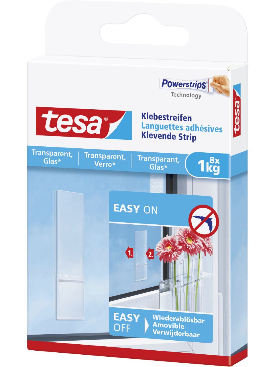 Die Klebestreifen basieren auf der tesa Powerstrips Technologie, sind transparent und auf Glas oder Fensterscheiben kaum zu erkennen. Daher können Sie Sie leichte Objekte wie Postkarten, Zeichnungen oder Fotos nahezu unsichtbar aufhängen. Nachdem Sie den Untergrund mit Fensterreiniger (ohne Silikon) oder Brennspiritus gründlich gereinigt haben, drücken Sie den Klebestreifen fest an - mindestens fünf Sekunden. Achten Sie bei der Anwendung darauf, dass Ihre Finger die offenen Klebeflächen nicht berühren. Ziehen Sie den Klebestreifen einfach vorsichtig und parallel zur Oberfläche nach unten. Es bleiben keine Rückstände haften. Hinweis: Nicht paralleles oder zu schnelles Abziehen könnte zum Reißen des Klebestreifens bzw. zu Beschädigungen des Untergrundes führen. Die transparenten Klebestreifen eignen sich auch zur Wiederverwendung des Klebehakens (1kg), mit dem Sie u. a. Lichterketten, Girlanden und andere Dekorationsobjekte aufhängen können.