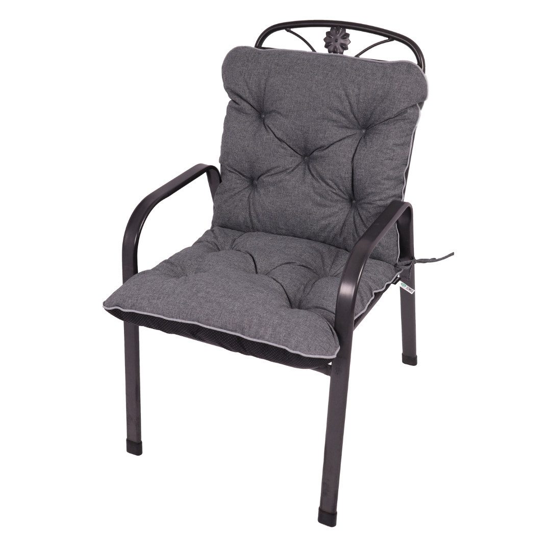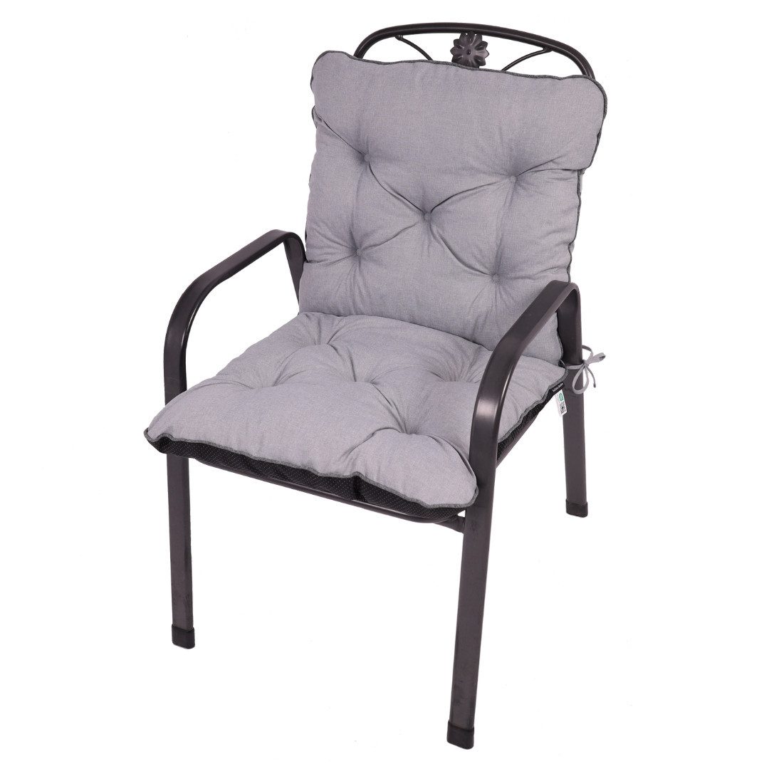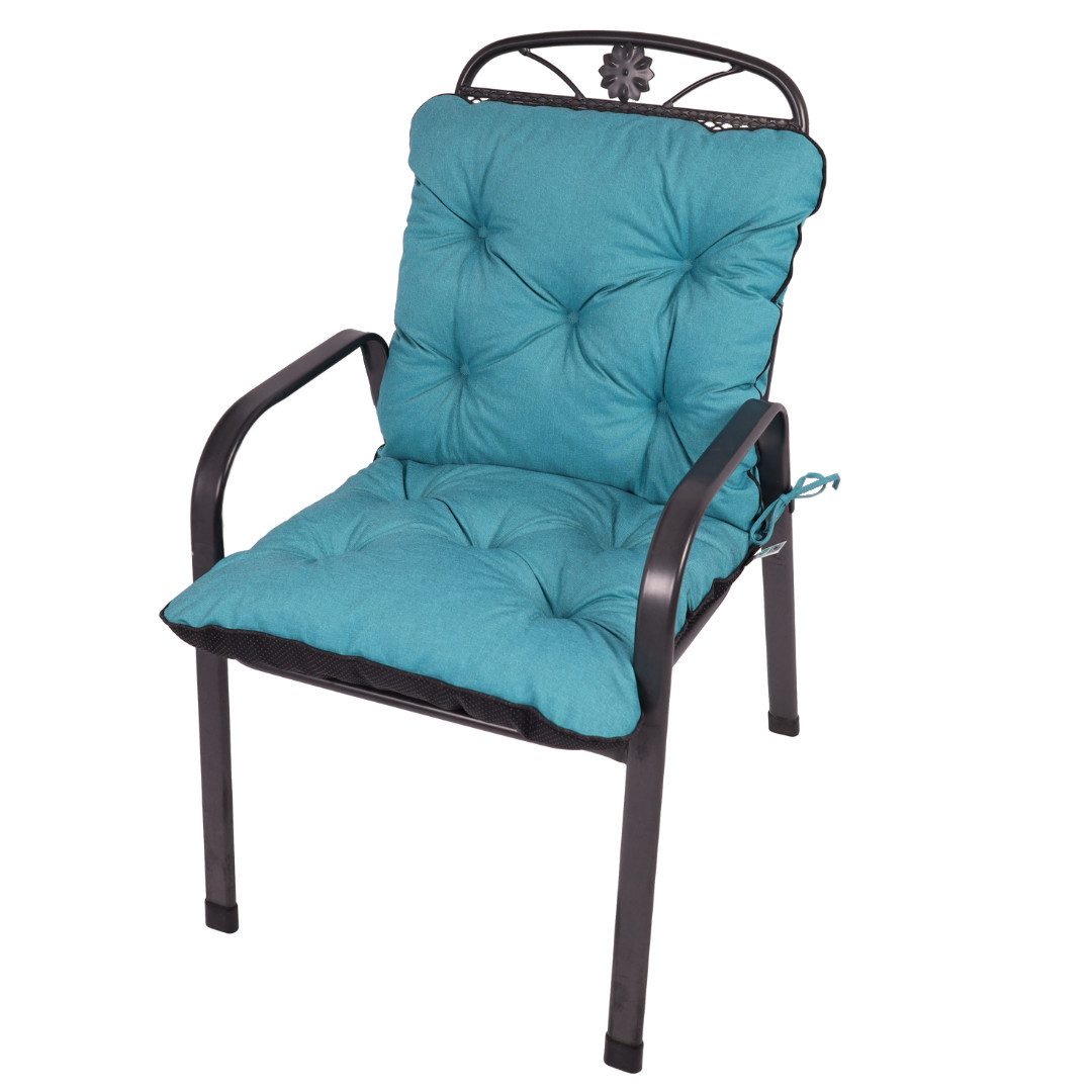 Die Polsterung besteht aus hochwertiger Füllung (Schaum- oder Flockenfüllung), die durch eine feste Steppung zuverlässig an Ort und Stelle gehalten wird – so bleibt die Auflage auch bei fortlaufender Nutzung formfest und bequem. Der Bezug aus 100 % Polyester ist robust, wetterfest und wasserabweisend, wodurch die Auflage auch bei wechselnden Witterungsbedingungen draußen genutzt werden kann. Hinzu kommt UV-Beständigkeit, damit Farbe und Material länger schön bleiben.