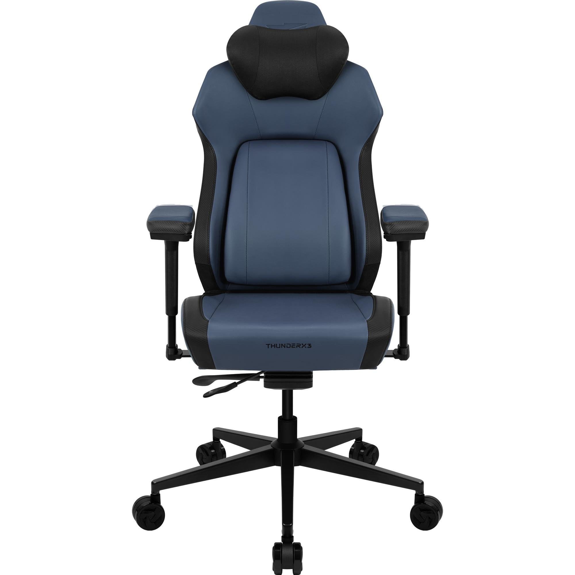 Der ThunderX3 CORE Smart Gaming Stuhl ist die ideale Wahl für alle, die Wert auf Komfort und Ergonomie legen. Mit seiner innovativen Rückenstütze passt sich der Gaming Sessel automatisch deiner Haltung an und bietet dir stets optimalen Support – egal, ob du fokussiert arbeitest oder entspannt zockst. Die Synchronmechanik sorgt dafür, dass Sitzfläche und Rückenlehne sich synchron deinen Bewegungen anpassen, sodass du jederzeit eine ergonomische Haltung beibehältst. Durch dieses durchdachte Design fördert der Game Chair natürliche Bewegungen und hält deinen Körper auch bei langen Sitz-Sessions in Bewegung. Dank der vielseitigen Anpassungsmöglichkeiten kannst du den CORE Smart perfekt auf deine Bedürfnisse einstellen. Die 3D-verstellbaren, gepolsterten Armlehnen bieten dir Flexibilität und lassen sich in Höhe, Tiefe und Winkel anpassen, um deine Arme optimal zu unterstützen. Die 2-in-1-Kopfstütze mit Memory Foam und die einstellbare Sitzhöhe und -tiefe garantieren zusätzlichen Komfort, sodass der Stuhl für Nutzer zwischen 155 und 190 cm perfekt geeignet ist. Hochwertige Materialien wie das elegante Kunstleder sorgen für eine angenehme Haptik, Atmungsaktivität und eine edle Optik. Die robuste Stahlbasis und die leisen 75-mm-Rollen gewährleisten Stabilität und Langlebigkeit, selbst bei intensiver Nutzung bis zu einem Gewicht von 125 kg. Ob Gaming oder Büroarbeit, der ThunderX3 CORE Smart Gaming Stuhl premium vereint modernes Design mit durchdachten Funktionen, um dir besten Sitzkomfort und zuverlässige Unterstützung zu bieten. So kannst du auch bei langen Sessions bequem und gesund sitzen.