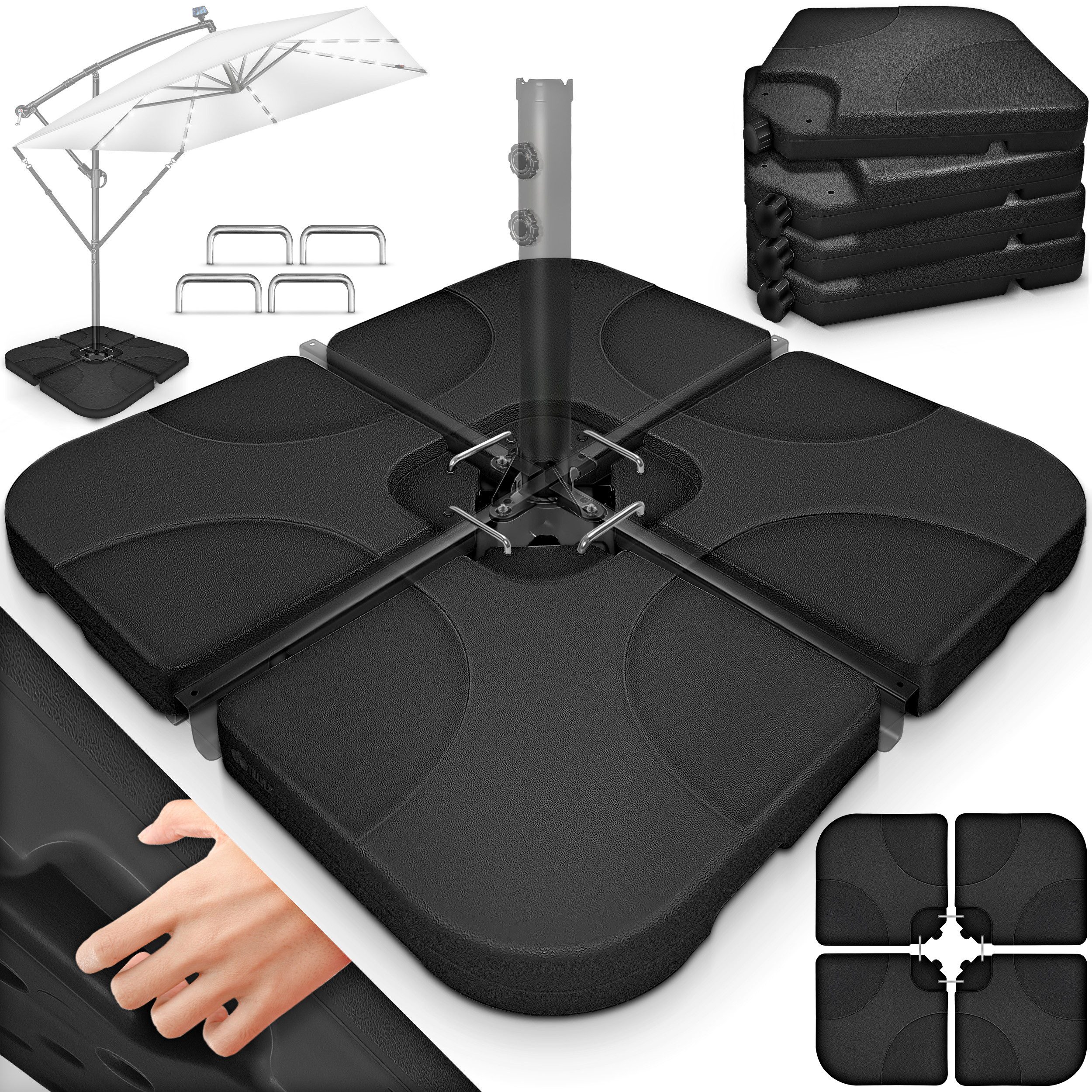 tillvex® Sonnenschirmständer 60 Liter / 80 kg – 4-teilig für Ampelschirm inkl. Metallverbinder | Schirmgewicht befüllbar mit Wasser oder Sand | Schirmständer Ampelschirmständer wetterfest
