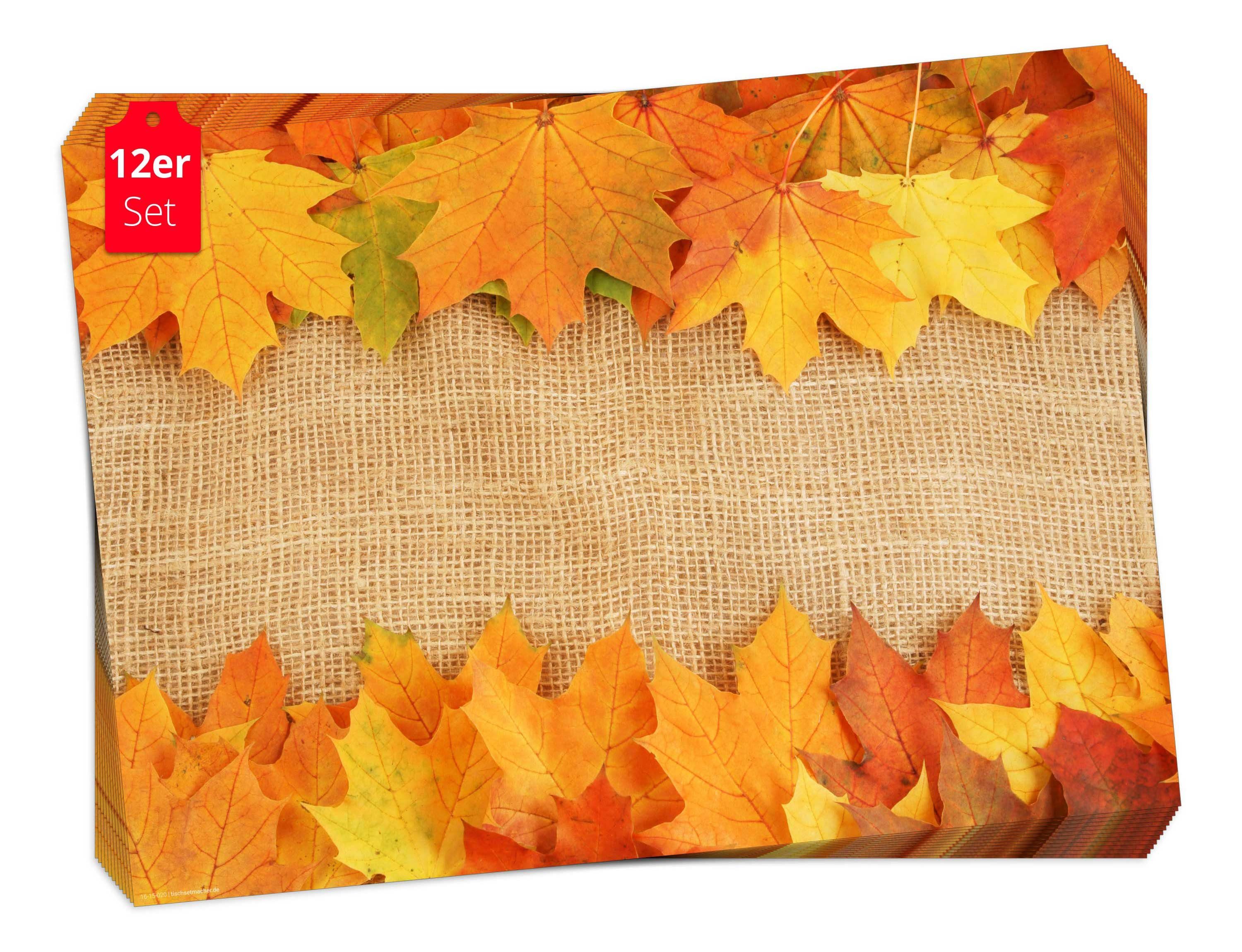 Diese Tischsets sind die perfekte Herbstdekoration für deinen Esstisch und lassen das Essen bunter schmecken! Begeistere deine Gäste mit diesen besonders individuellen Platzsets und bringe frische Farbakzente in deine Deko. Jedes Tischset besteht aus hochwertigem, dickem Papier und ist mit lebensmittelechten Farben bedruckt. Die Sondergröße von 44 x 32 cm bietet genug Platz für Teller, Besteck und Getränk.