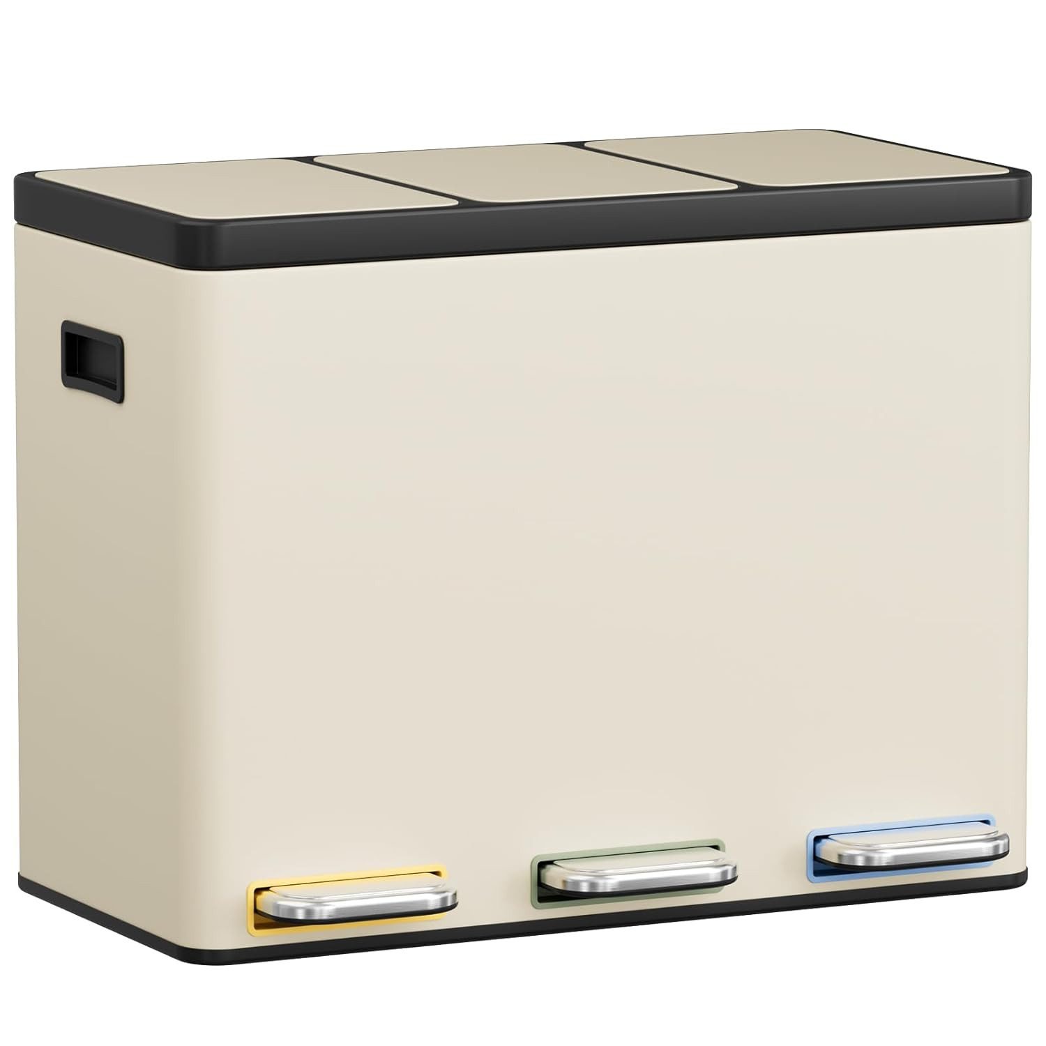 45L Drei-Fach-Mülleimer aus Edelstahl | Schwarz/Silber/Aprikot