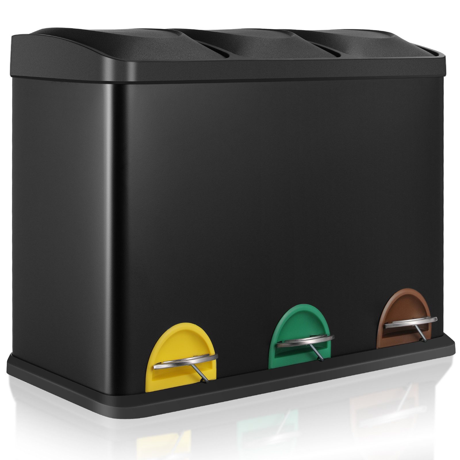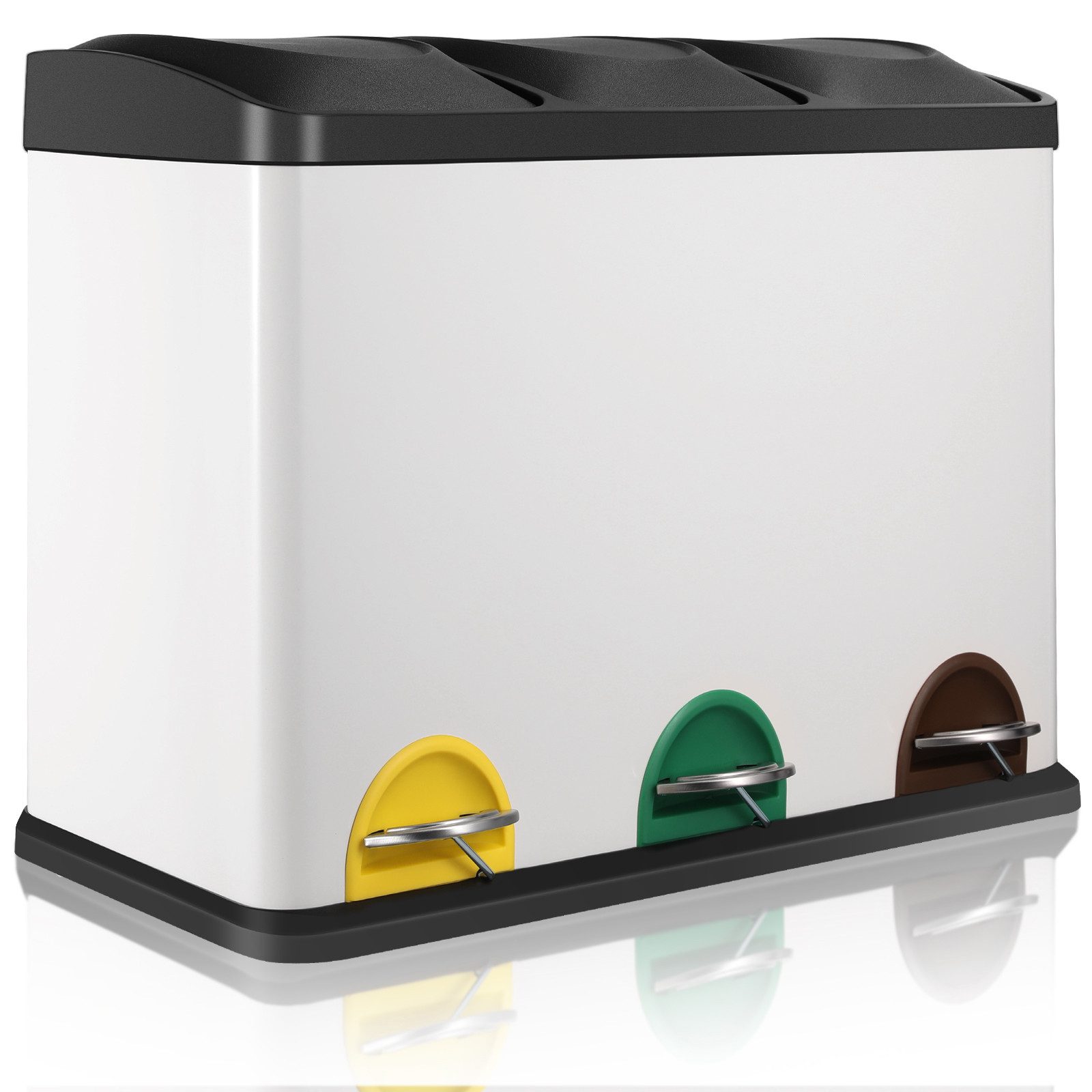 3. 3 Fächer zum einfachen Sammeln und Sortieren von Müll. Jedes Fach ist 8 L/15Lgroß, insgesamt 24 L/45L, was den täglichen Bedarf einer kleinen Familie mit 1-2 /3-4Personen decken kann.