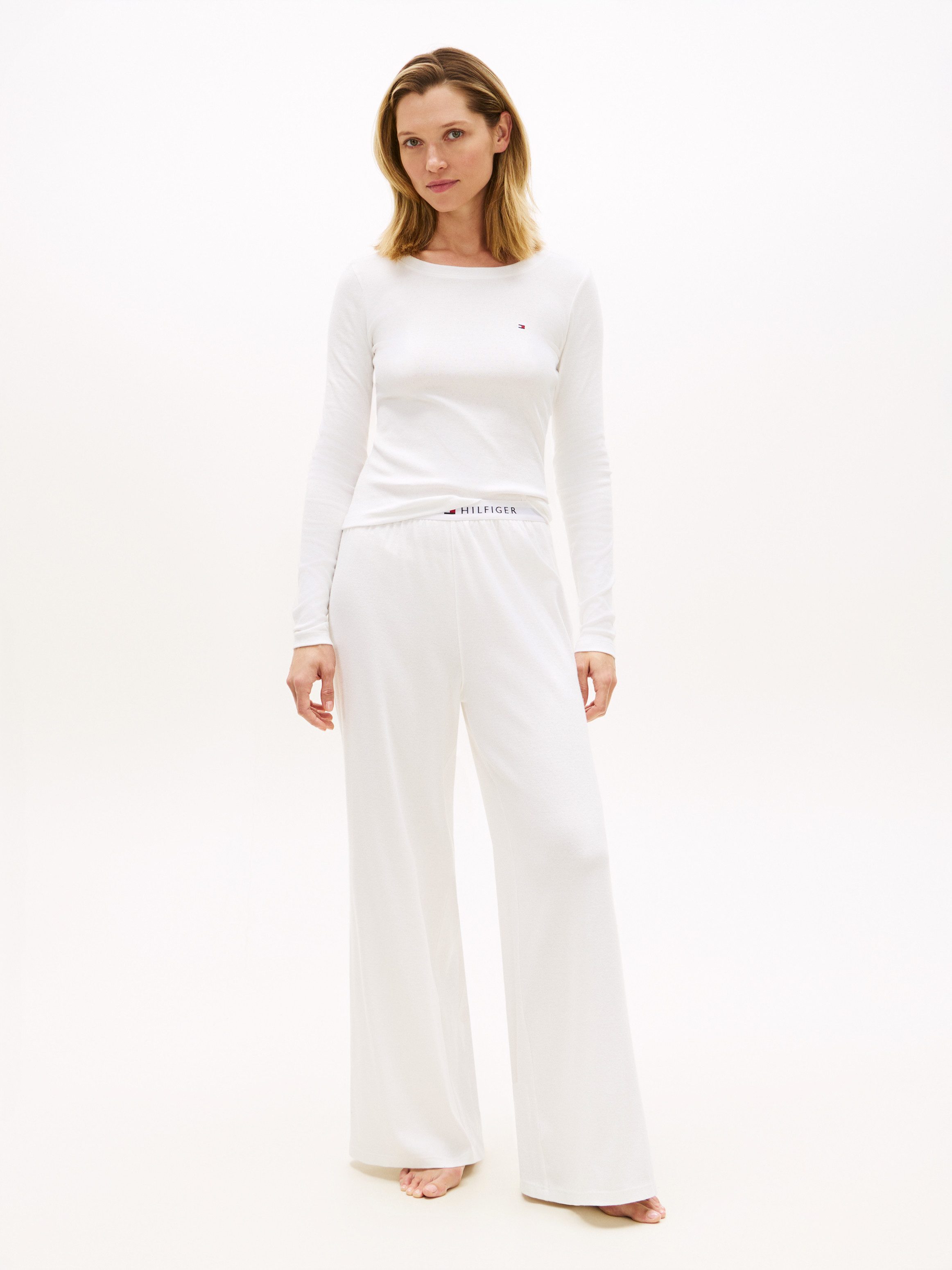 Endlich Me-Time: Einen entspannten Abend verspricht dir dieser zweiteilige Damen-Pyjama aus der TH ESS SLEEP Serie von Tommy Hilfiger Underwear. Er ist normal lang geschnitten. Ein gerader Abschluss bei Leibhöhe komplettiert die Optik. Zum Hals hin schließt ein Rundhalsausschnitt den Pyjama ab. Seine Ärmel sind lang. Die Hosenbeine sind gerade geschnitten. Das Markenlabel setzt den persönlichen Stil gekonnt in Szene.