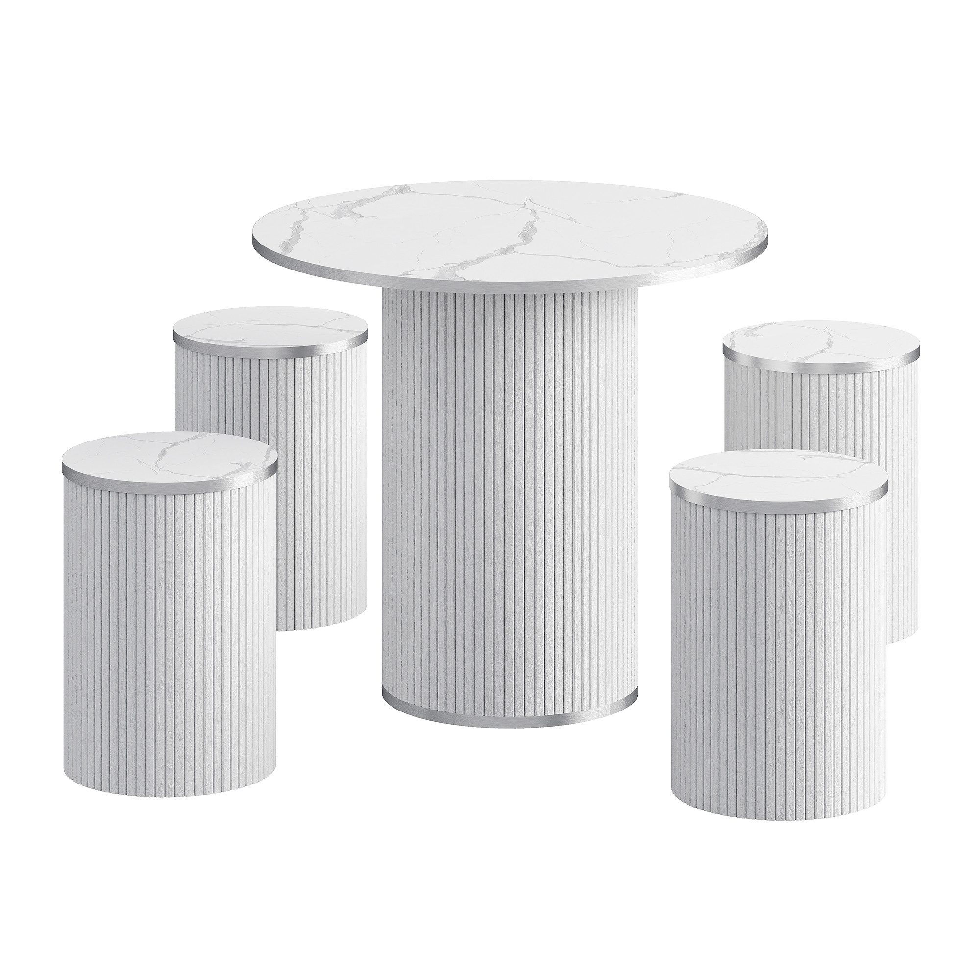 Perfekt für kleine Räume, Familien mit 4 Personen oder Apartments. Erweitern Sie Ihren Essbereich oder Ihre Küche mit diesem exquisiten modernen Stil runden Esstisch für 4
