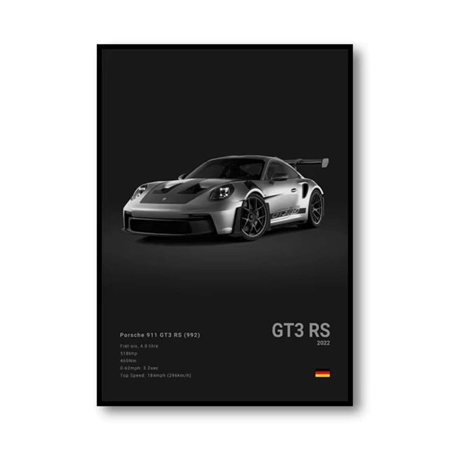 TPFLiving Kunstdruck OHNE RAHMEN, Legendäre Sportwagenkunst für moderne Räume - (Leinwandbild XXL), Farben: Farben: Grau, Schwarz, WeißGröße: 20x30cm