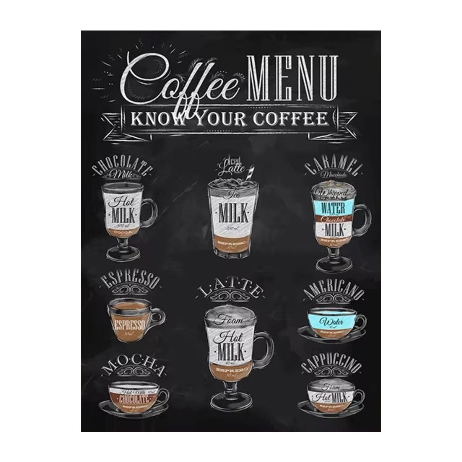 Retro-Kaffeemenu im Vintage-Tafelstil - (Leinwandbild XXL), Farben: Farben: Schwarz, WeißGröße: 13x18cm
