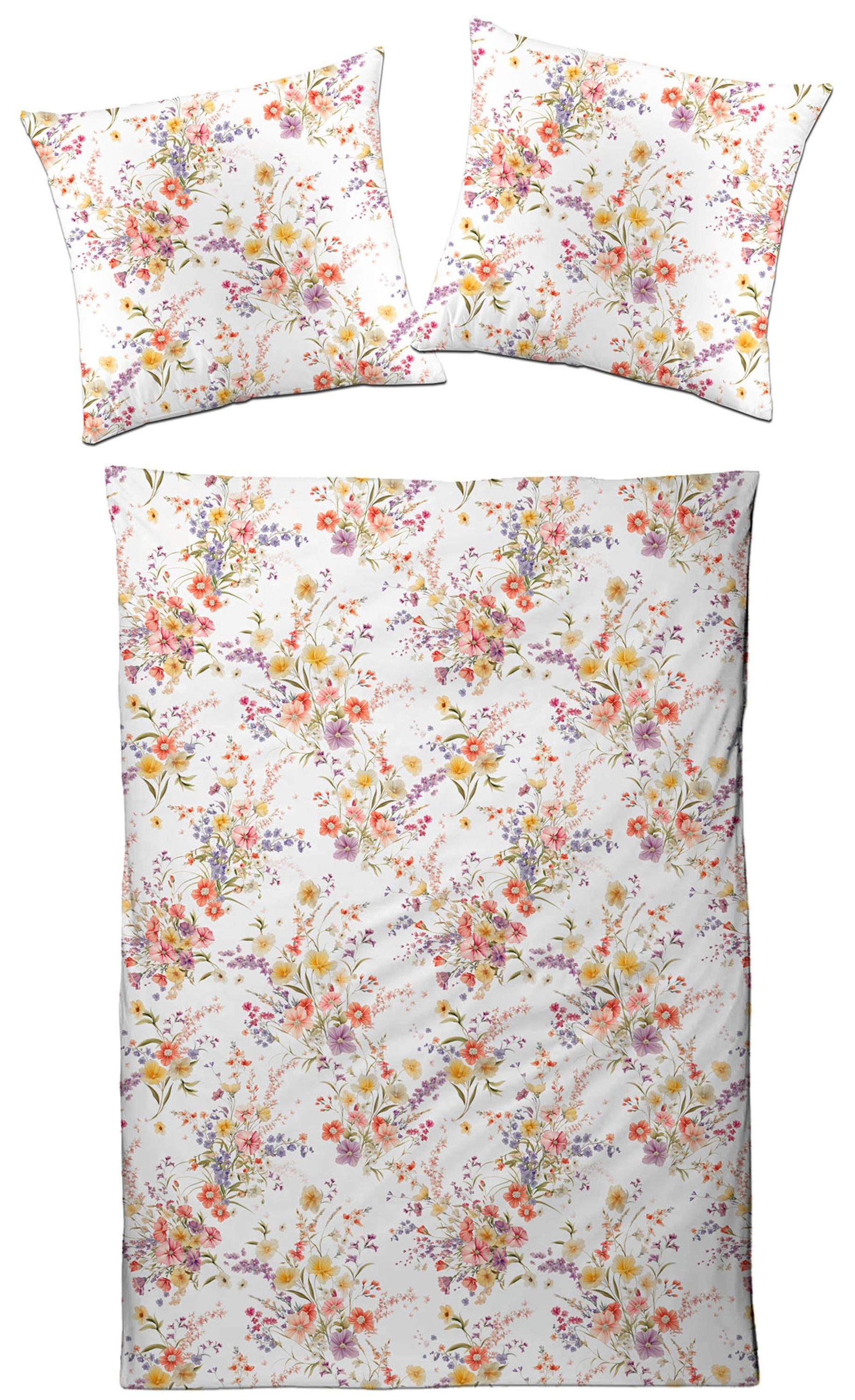 Traumschloss Bettwäsche Interlock Jersey, Interlock Jersey, 2 teilig, bunte Sommerblumen, heller Hintergrund