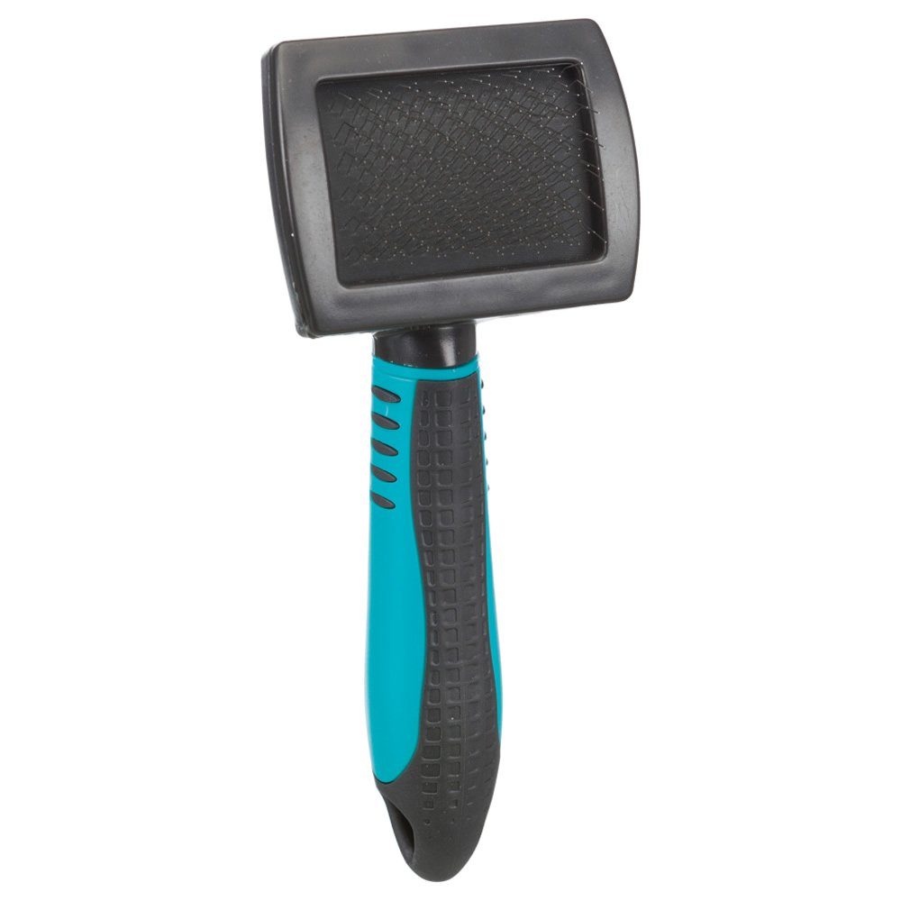 Die Trixie Kunststoff Softbürste bietet eine schonende Pflege für das Deckhaar und die Unterwolle von Hunden. Mit ihren extra weichen Metallborsten sorgt sie dafür, dass das Fell des Hundes nicht beschädigt wird. Der Griff der Bürste ist mit einer rutschfesten Gummieinlage versehen, um einen sicheren Halt während der Pflege zu gewährleisten. Die Bürste eignet sich für verschiedene Felltypen, einschließlich Langhaar, Rauhaar, Kurzhaar und Lockhaar. Hergestellt ist die Bürste aus hochwertigem Kunststoff. Mit der Trixie Kunststoff Softbürste wird die Fellpflege des Hundes zu einer angenehmen und schonenden Erfahrung.