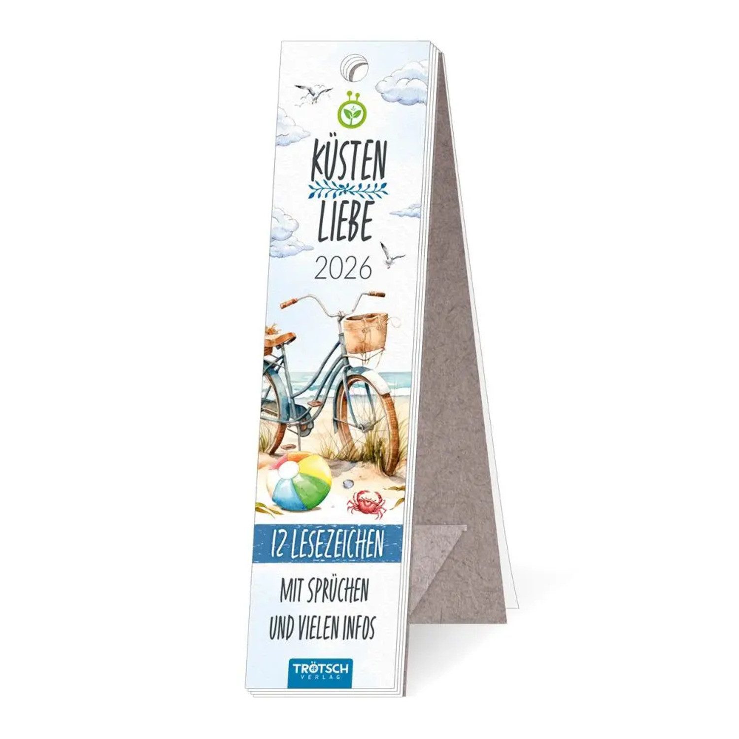 Dieser Lesezeichenkalender schenkt jeden Monat aufs Neue ausgewählte Spruchweisheiten und zauberhafte Aquarellzeichnungen. Die Rückseiten bieten praktische Tipps für den Urlaub an der Küste. Zusätzlich gibt es interessantes Wissen und leckere Rezepte zum Ausprobieren. Der kleine Kalender ist aber noch weit mehr als ein nützlicher Blickfang, denn die Seiten lassen sich herausgetrennt wunderbar als Lesezeichen verwenden. Ein ideales Geschenk oder Mitbringsel, um Familie, Freunde oder sich selbst ein Jahr voller Freude zu schenken!