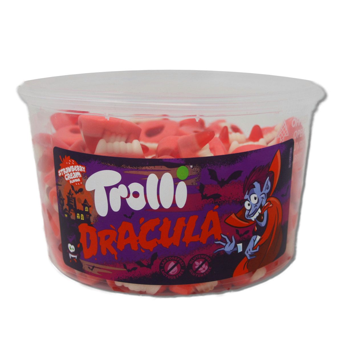 Mit den Trolli Dracula Gebissen wird Naschen zum Spiel! Die witzigen Mini-Gebisse aus weichem Schaumzucker und fruchtigem Fruchtgummi sehen nicht nur zum Anbeißen aus – sie schmecken auch so! Ideal für Halloween, Partys oder einfach für zwischendurch. Und das Ganze im praktischen 1050 g Vorratsbeutel.
