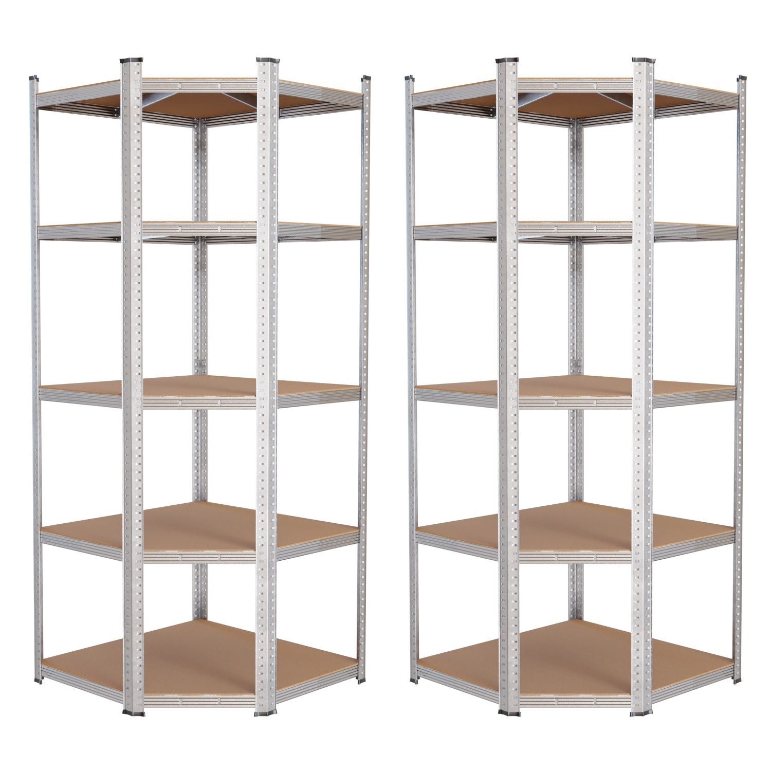 Das Schwerlastregal 2er Set ist die richtige Wahl, wenn robuste und zugleich flexible Lagerlösungen benötigt werden. Jedes Regal verfügt über fünf MDF-Böden, die dank solider Metallstreben und Querstreben sicher getragen werden. Mit einer Gesamtbelastung von bis zu 875 kg pro Regal (175 kg je Boden) lassen sich auch schwere Gegenstände zuverlässig lagern. Damit ist das Lagerregal sowohl für Keller und Garage als auch für Werkstatt und Abstellraum bestens geeignet.