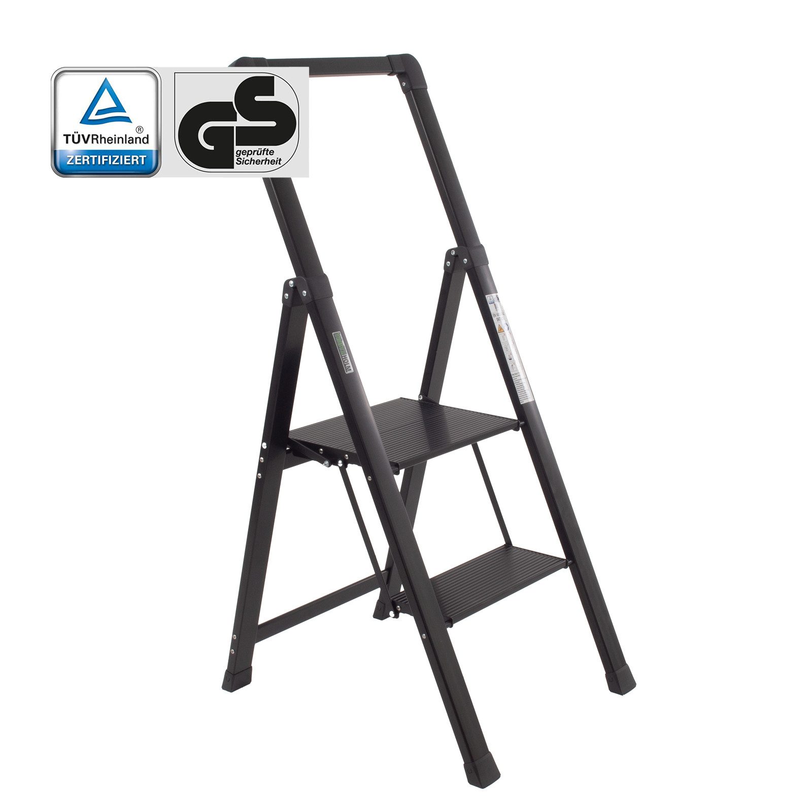 1x TRUTZHOLM Trittleiter 2-stufig mit Handlauf klappbar, bis 150 kg belastbar, originalverpackt und fertig montiert