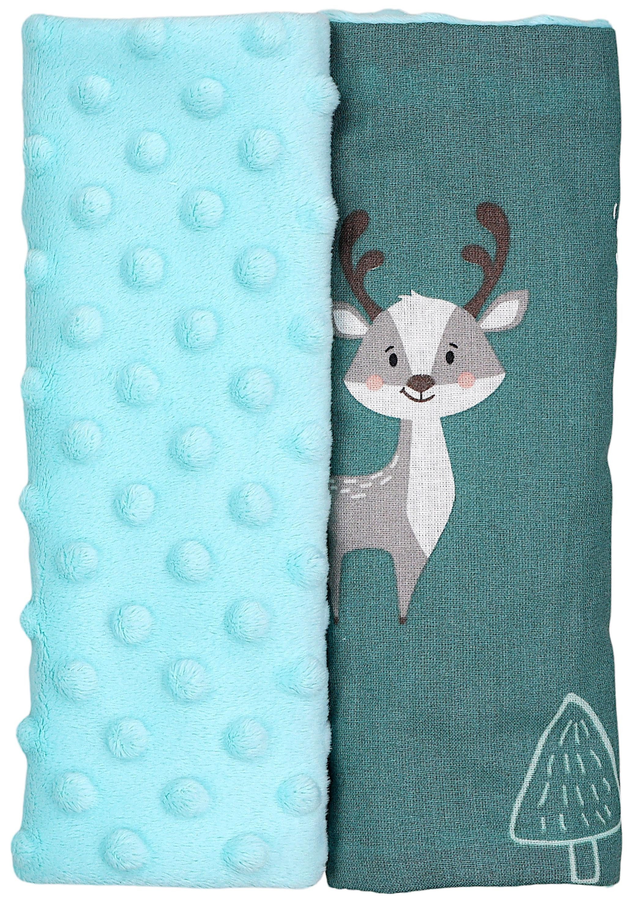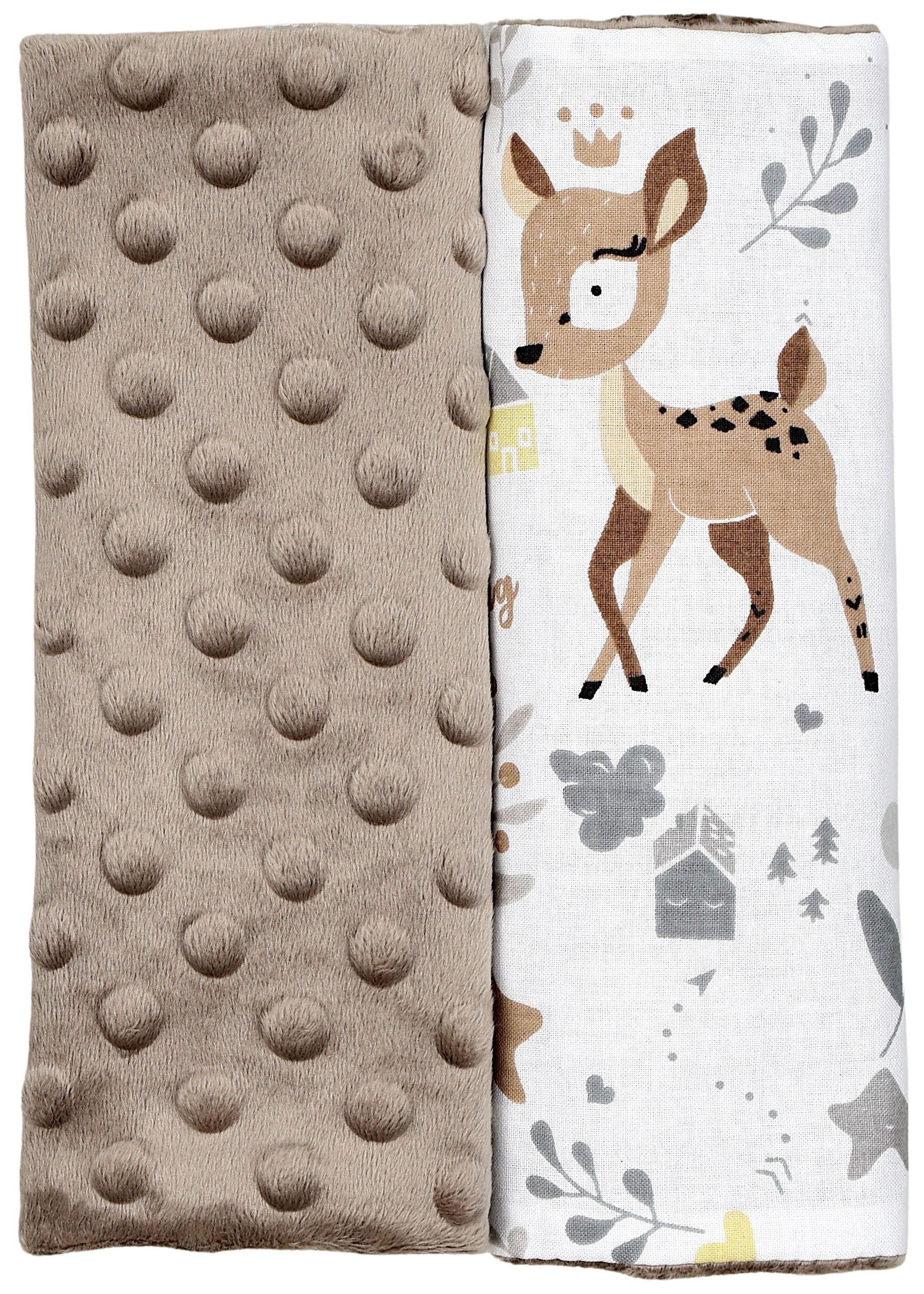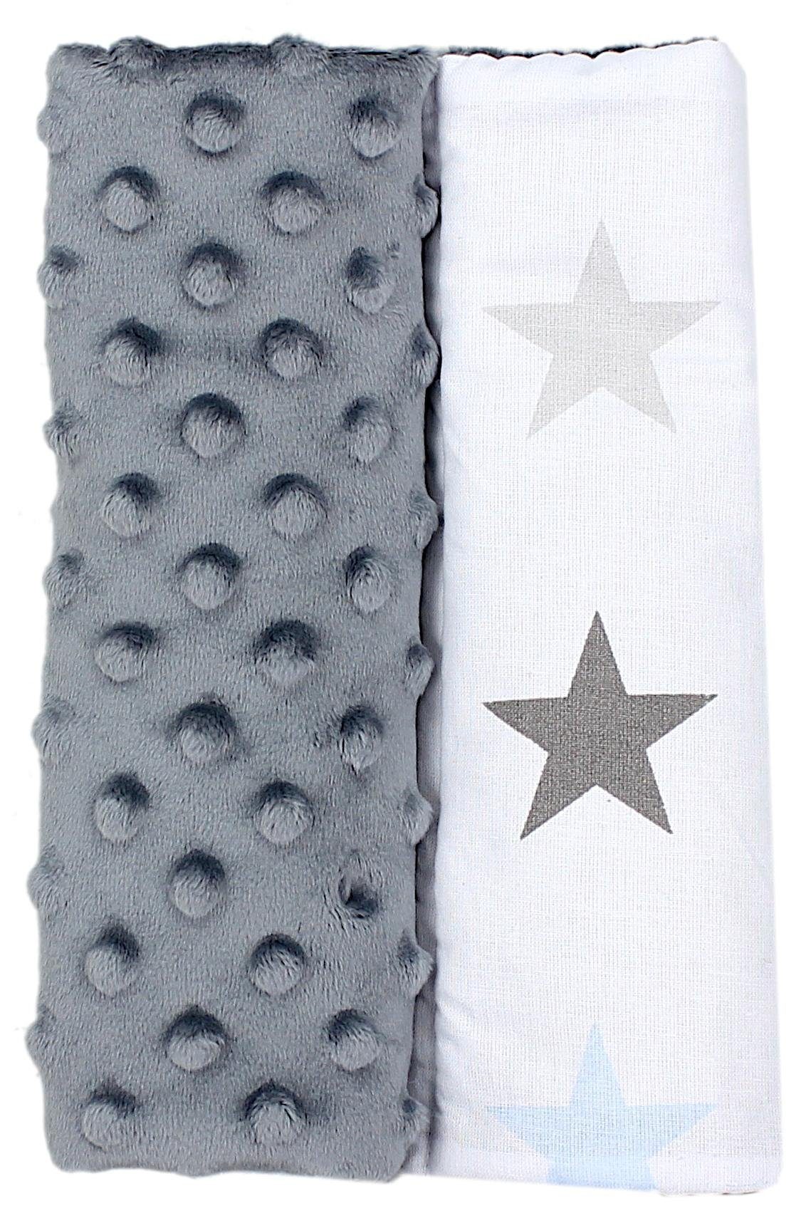 Beidseitig verwendbar - eine Seite aus einfarbigem, anschmiegsamem Minky-Stoff, die andere Seite aus bedruckter Baumwolle (schönes Sterne Design)