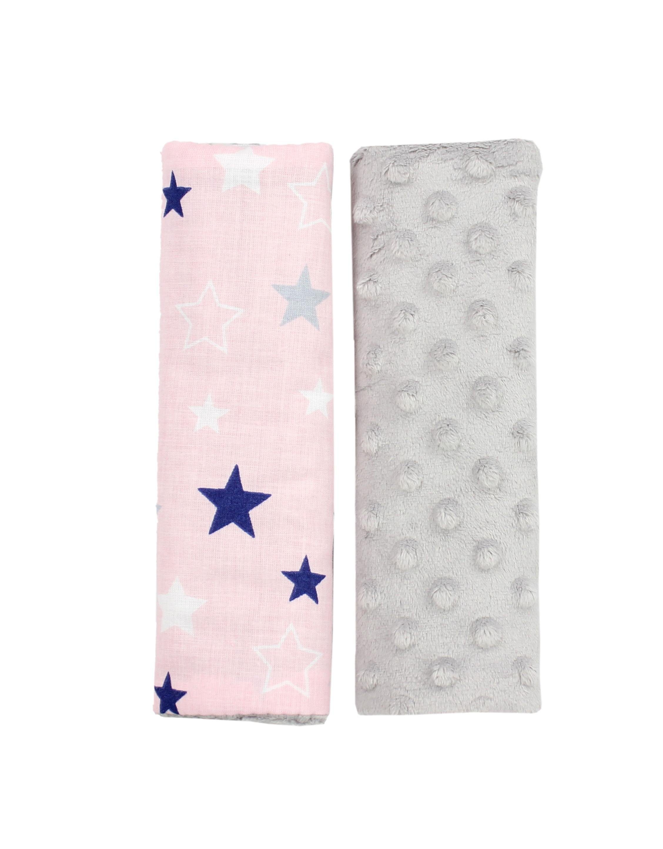 Beidseitig verwendbarer Auto Gurtpolster von TupTam im attraktiven 2er Pack. Ein bequemes Accessoire, welches das unangenehme Reiben des Sicherheitsgurtes am Hals reduziert. Es begeistert zudem mit zweiseitiger Optik - eine Seite aus einem kuschelig weichen Plüschstoff (Minky) und die zweite Seite aus gemusterter Baumwolle. Leicht gefüttert ist der Gurtschoner mit antiallergischem Polyester. Durch den Klettverschluss lässt er sich unkompliziert anbringen und abnehmen und passt dank der praktischen Größe von ca. 21 × 18 cm für alle Autogurte. Zur Auswahl stehen schöne Farb- und Musterkombinationen: Sternchen Weiß/Grau, Sterne Dunkelblau/ Blau, Sterne Grau/Weiß, Sterne Hellgrau Weiß/Rosa, Sterne Mint/Grau.Hergestellt in der EU.