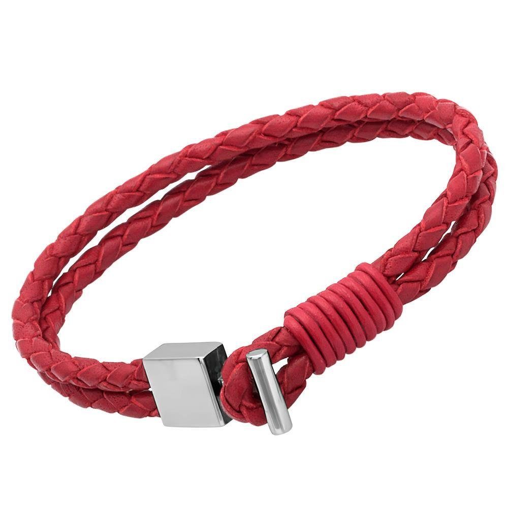 Lederarmband Unique Lederarmband: Rot mit Edelstahlverschluss LB0279 (Länge: 19cm)