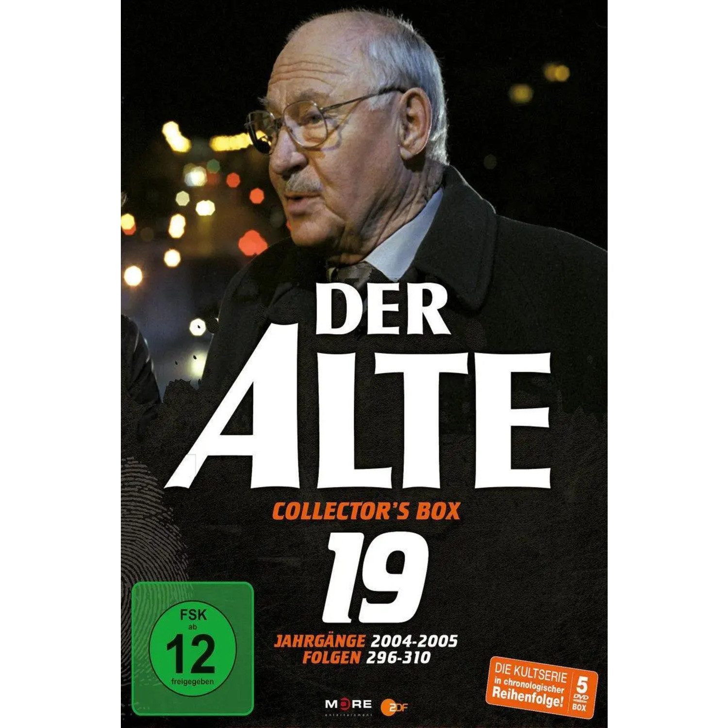 15 weitere Episoden der ZDF-Kult-Krimiserie auf 5 DVDs! Die neue, 19. Collector¿s Box der legendären Kultserie DER ALTE hat wieder ein hochwertiges Digi-Packaging mit Banderole und enthält die Episoden 296 bis 310 aus den Jahrgängen 2004 bis 2005. Erleben Sie 15 Stunden Hochspannung mit Hauptkommissar Leo Kress (Rolf Schimpf) und seinem Team, das seinen Fällen hartnäckig nachgeht und potentiellen Tätern gehörig auf den Zahn fühlt.