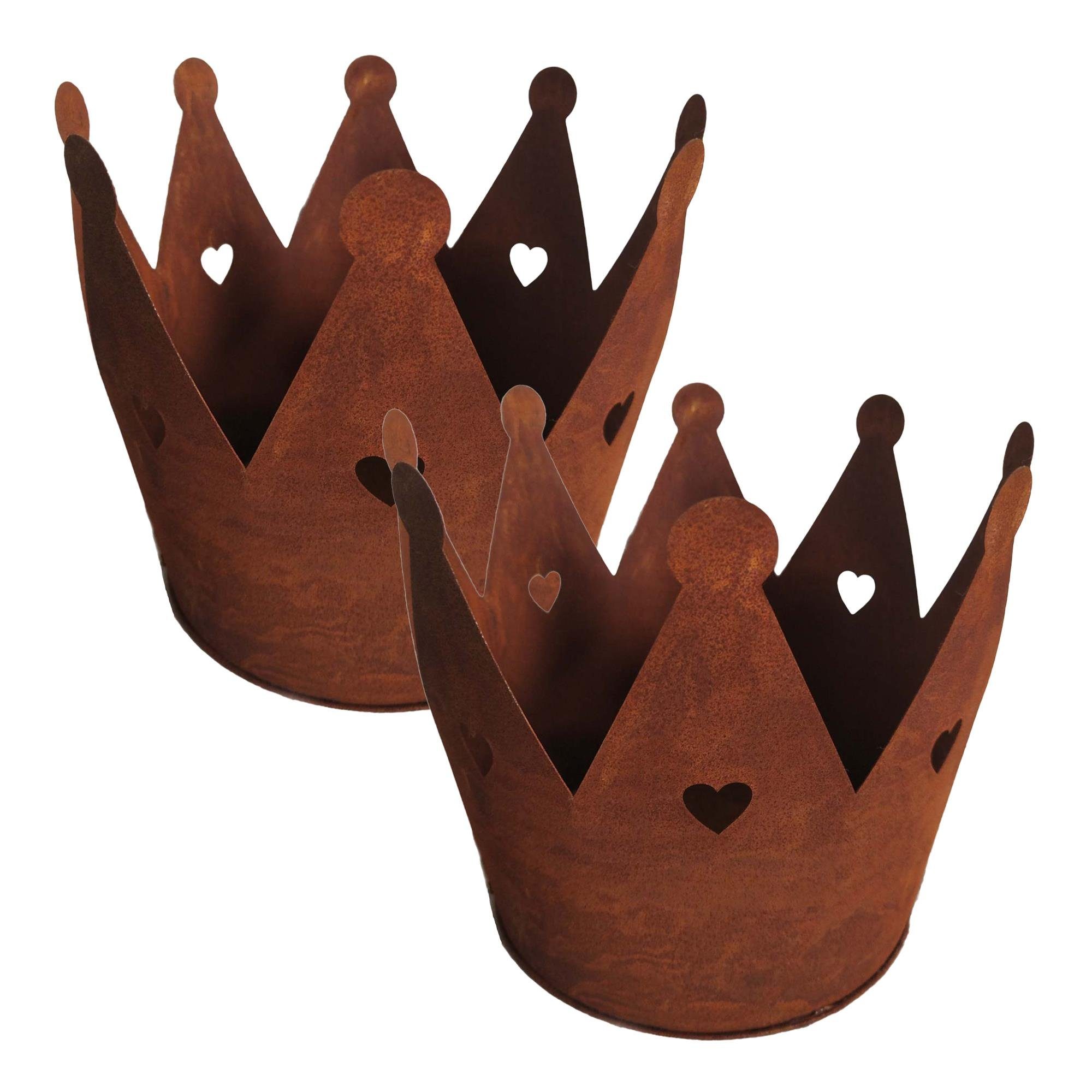 Krone Rost mit Herzen 2er Set, Gartendeko Rostoptik, Dekoration für Garten aus Edelrost, Rost Deko für Eingangsbereich, Terrasse, Balkon, Blumentopf