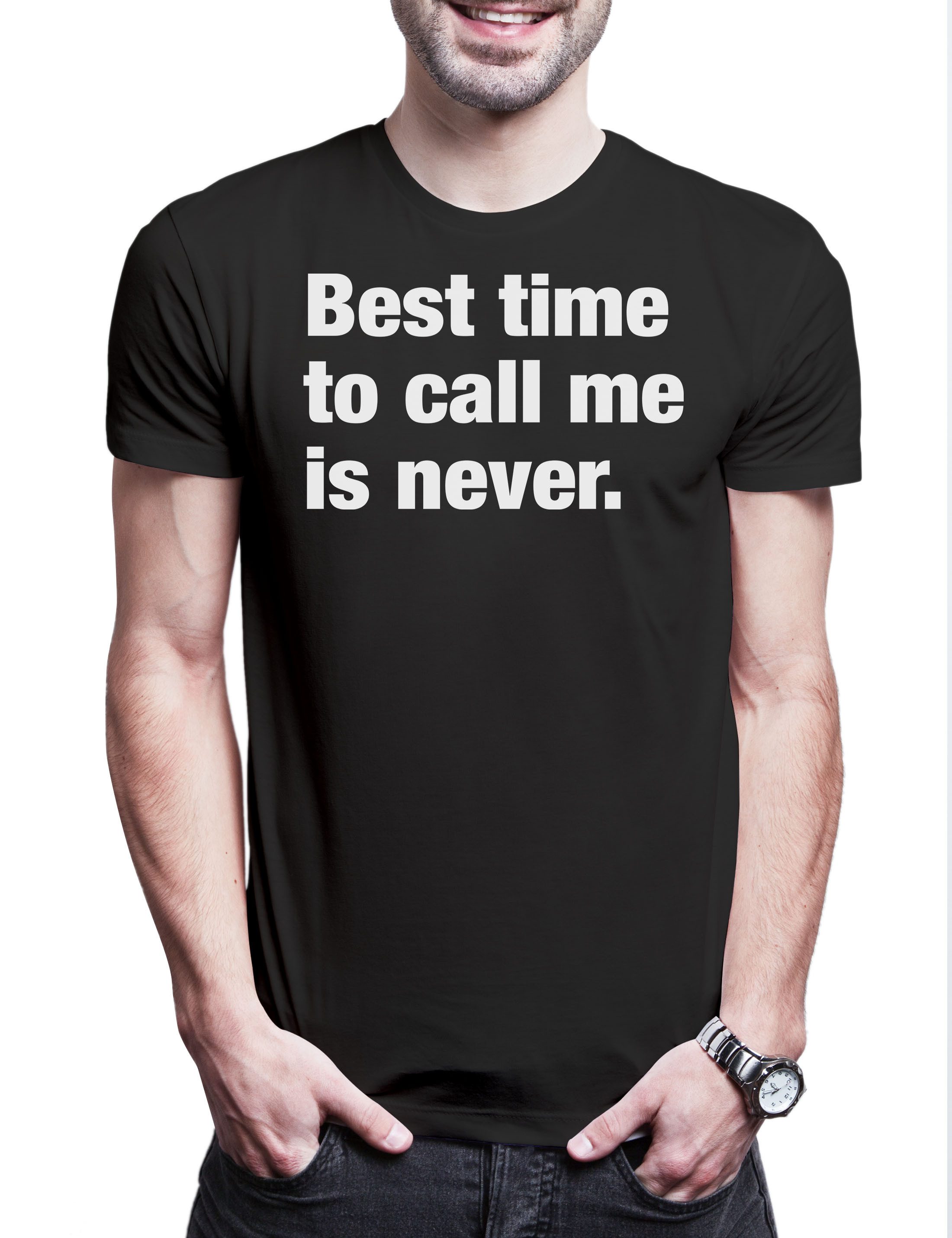Mit unserem Best Time To Call Me Is Never Herren T-Shirt setzt Du das richtige Statement und zeigst deinem Umfeld was Dich wirklich beschäftigt! Das ideale Geschenk für Geburtstage, Weihnachten, Ostern, Vatertag und Muttertag oder einfach als Aufmerksamkeit für einen guten Freund/Freundin, Kollegen/Kollegin!