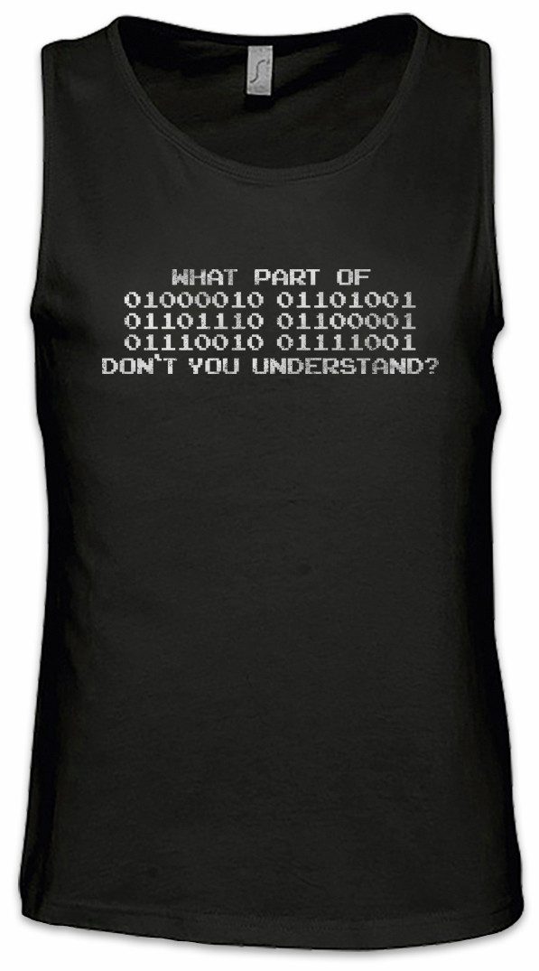 Mit unserem What Part Of Binary Don't You Understand Ärmelloses T-Shirt setzt Du das richtige Statement und zeigst deinem Umfeld was Dich wirklich beschäftigt! Das ideale Geschenk für Geburtstage, Weihnachten, Ostern, Vatertag und Muttertag oder einfach als Aufmerksamkeit für einen guten Freund/Freundin, Kollegen/Kollegin!