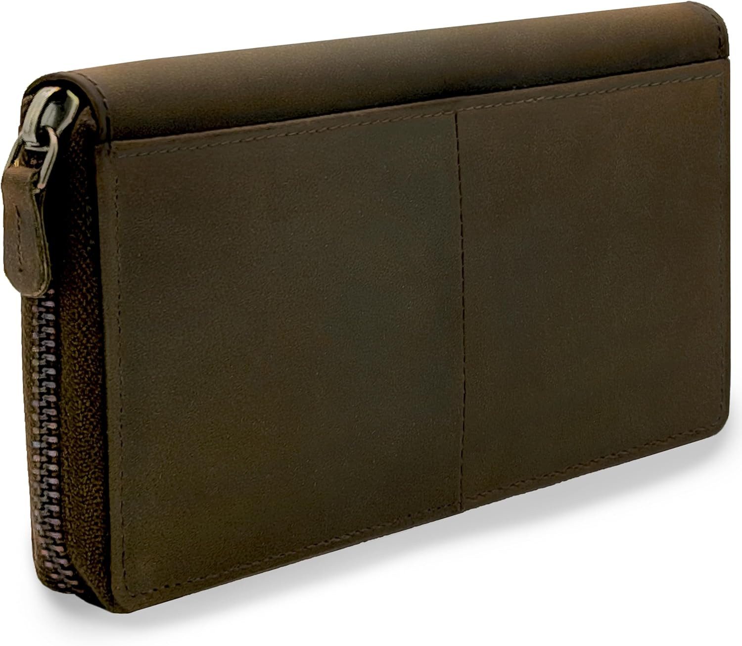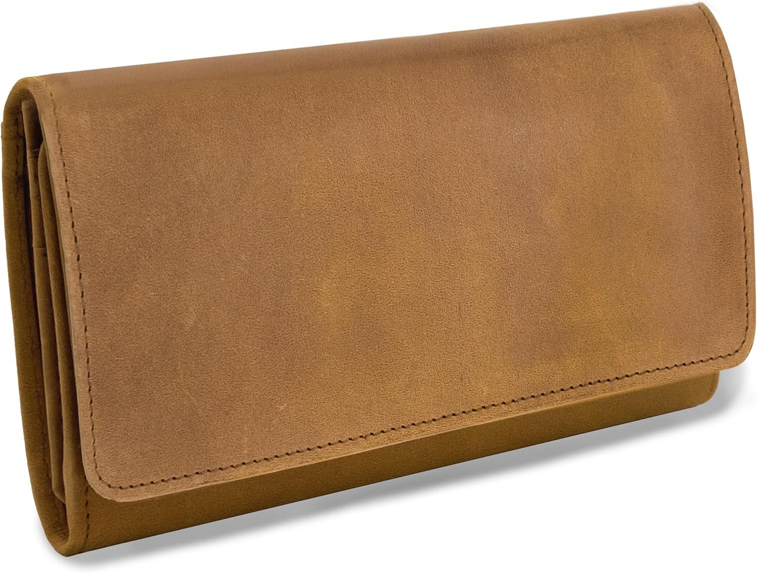 Exklusive Damen-Geldbörse, Damen Portemonnaie aus Leder, Lederbörse Damen mit Überschlag aus Naturleder. Das Leder und die Verarbeitung bestechen durch hohe Qualität und bestehen problemlos Vergleiche mit Produkten, die mehr als das Doppelte kosten. Abgerundet wird das Ganze mit einer schönen Verpackung, durch die sich diese Geldbörse auch perfekt als Geschenk eignet. Der Clou: Dieses Leder Portemonnaie wird mit der Zeit immer schöner und erhält eine tolle Patina und anschmiegsame Haptik. Maße: Breite: 20 cm, Höhe: 10 cm, Tiefe: 3 cm. Ausstattung: 2 Geldscheinfächer, 3 Dokumentenfächer, 14 Kreditkartenfächer, 2 Sichtfächer (z.B. für Passfotos), 1 großes Rückfach, 1 großes Münzgeldfach mit YKK Marken-Reißverschluss. Das Innenfutter ist Ton in Ton gehalten. Die Geldbörse ist neu und wird in einer Geschenkbox geliefert. Mit diesem Geldbeutel aus hochwertigem Naturleder erhalten Sie einen langjährigen Begleiter, der keine Wünsche offen lässt. Diese Börse verfügt über besonders viel Platz für alle notwendigen Ausweise, Geldscheine, Quittungen, Zettel, Karten und was eine Frau sonst noch alles in Ihrer Damen Geldbörse aus Leder so benötigt. Egal ob Freizeit, Business, Reise, Sport, Kurztrip, Stadtbummel oder als Geburtstagsgeschenk bzw. Geschenk zum Valentinstag - dieses Modell ist ein alltagstauglicher Alleskönner. Auch als Weihnachtsgeschenk oder als Ostergeschenk eignet sich diese Börse hervorragend. Zu einem kleinen Preis kann man Freunden, Bekannten und Verwandten eine große Freude bereiten und etwas wirklich nützliches verschenken, an dem man lange etwas hat. 30 TAGE GELD-ZURÜCK-GARANTIE: Wir lieben Taschen und Accessoires und sind überzeugt von jedem einzelnen unserer Produkte! Wenn Sie dennoch einmal nicht zufrieden sein sollten, kontaktieren Sie uns einfach per Telefon oder per E-Mail und unser freundliches Service-Team wird sicherlich eine schnelle und zufriedenstellende Lösung für Sie finden. Natürlich haben Sie auch die Möglichkeit, Ihre Bestellung innerhalb von 30 Tagen an uns zu retournieren. URBAN FOREST Exklusive Damen-Geldbörse mit Überschlag aus einem geölten Naturleder Ausstattung: 2 Geldscheinfächer 3 Dokumentenfächer 14 Kreditkartenfächer 2 Sichtfächer (z.B. für Passfotos) 1 großes Rückfach 1 großes Münzgeldfach mit YKK Marken-Reißverschluss Das Innenfutter ist Ton in Ton gehalten Die Geldbörse ist neu und wird in einer Geschenkbox geliefert Maße: Breite: 20 cm Höhe: 10 cm Tiefe: 3 cm
