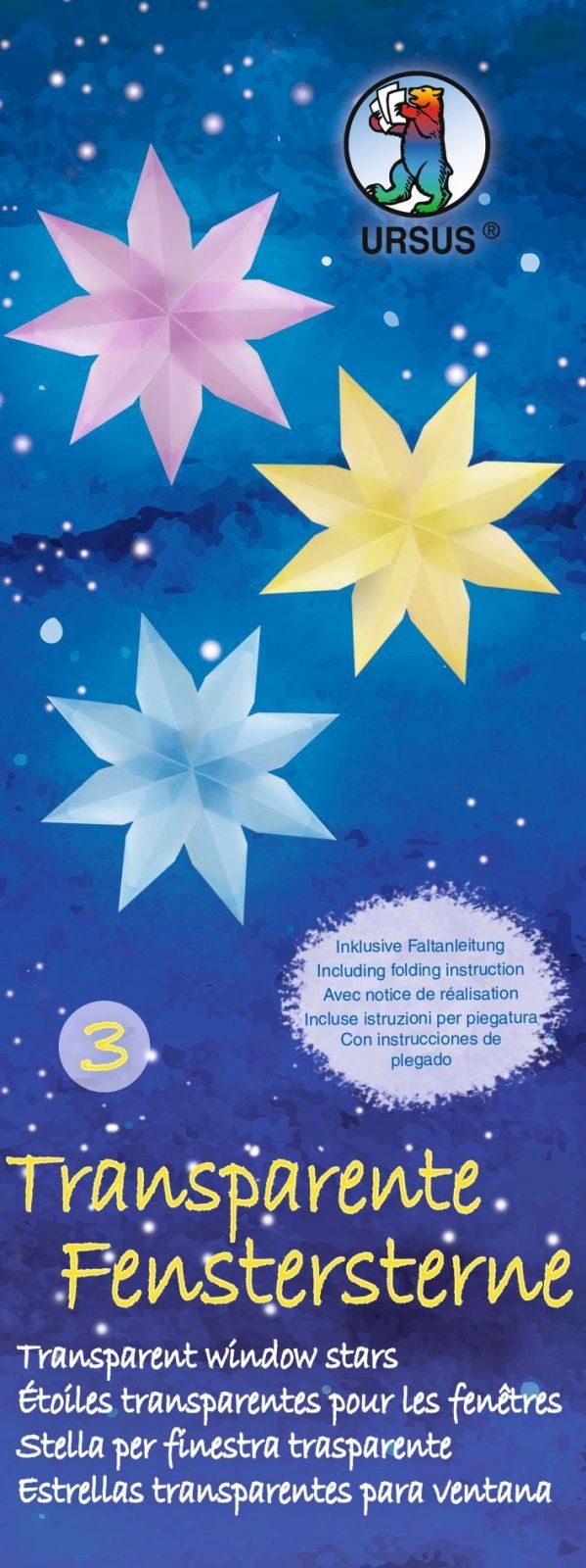 Ursus - Ludwig Bähr Papierdekoration Fenstersterne transparent VE=80 Blatt 6x16cm 5 Farben Sortierung 3