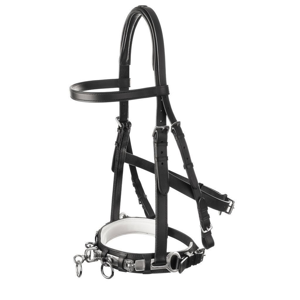 Der USG Kappzaum aus Leder eignet sich hervorragend zum Longieren, Führen und zur Ausbildung. Der Kappzaum besteht aus schwarzem Leder und fällt mit der weißen Unterlegung im Nasenbereich und dem rundgenähten Nasenriemen wie auch den silberfarbenen, beweglichen Beschlägen auf. Durch die vielen Verstellmöglichkeiten kann der Kappzaum optimal dem Pferdekopf angepasst werden.