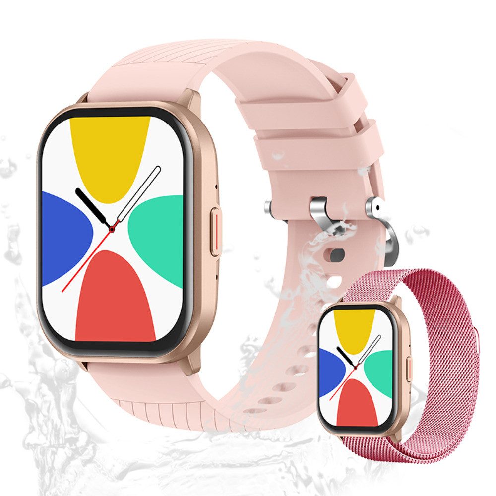 Die Smartwatch besticht durch ihr modernes Design, das aus hochwertigem ABS+PC Kunststoff mit einer Öl-Injektion besteht. Dieser Kunststoff sorgt für eine langlebige und widerstandsfähige Außenhülle. Das anti-statische Silikonarmband bietet zusätzlichen Komfort und verhindert, dass statische Aufladung zur Störung wird. Das elegante Design kombiniert Funktionalität mit Stil und macht diese Uhr zu einem idealen Begleiter für jeden Anlass