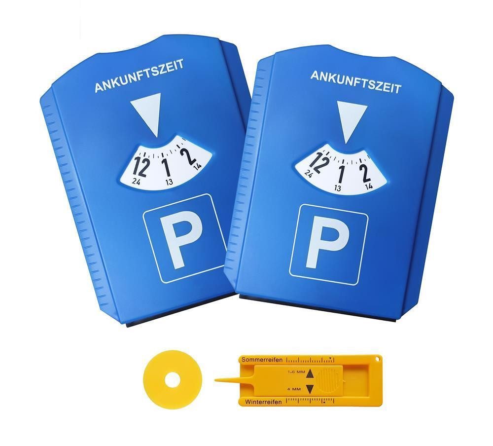 Parkscheibe Parkuhr mit Einkaufswagenchip, Reifenprofilmesser,