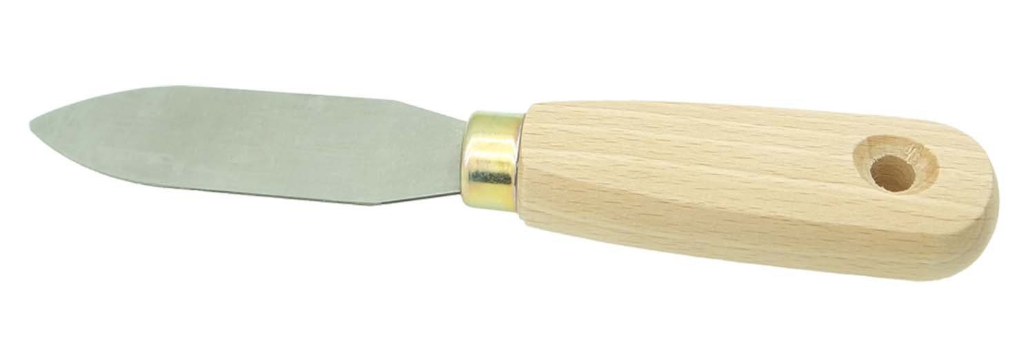 Das Kittmesser ist ein spezielles Messer, das oft für handwerkliche Arbeiten verwendet wird. Es zeichnet sich durch seine schmale Klinge aus, die für präzise Schnitte verschiedener Materialen geeignet ist. Der Begriff "Kitt" bezieht sich auf Materialen wie Dichtungs- oder Spachtelmassen, die mit diesem Messertyp genau aufgetragen werden können. Der Hartmetallschaber wird auch häufig für das Entfernen von Farbe, Rost, Klebstoffen oder anderen Beschichtungen auf Oberflächen verwendet.