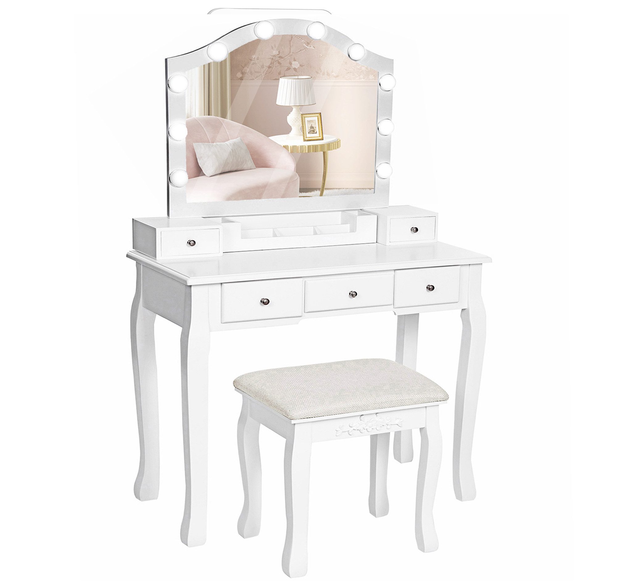 Eine tolle Geschenkidee zum Geburtstag, zu Weihnachten oder zu einem anderen bedeutsamen Jahrestag! Mit einem großen Spiegel, jede Menge Stauraum und einem bequemen Hocker wird dieser traumhafte Frisiertisch jeden zum Lächeln bringen!