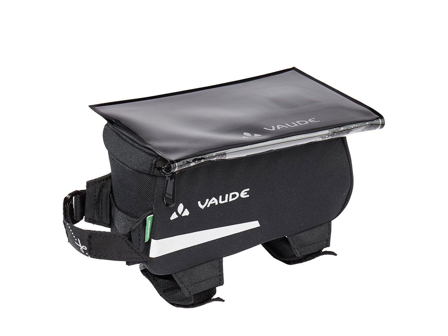 Die Vaude Carbo Guide Bag II Fahrradtasche, befestigst du ganz einfach per Klettverschluss an Oberrohr und Vorbau. So hat sie einen sicheren Sitz und du kannst jederzeit, während der Fahrt, auf deine wichtigsten Kleinigkeiten, wie Energieriegel, Kaugummi oder Handy zugreifen. Vor allem die Smartphonehalterung ist hier hervorzuheben. Denn in der großen, wassedichten Hülle, kannst du dein Smartphone auch während der Fahrt, zum Beispiel zur Navidation, verwenden. Typisch Vaude, wurde bei der Fertigung der Carbo Guide Bag II Oberrohrtasche auf eine umweltfreundliche Herstellung geachtet. So ist die Carbo Guide Bag II mit Siegeln wie Green Shape, Grüner Knopf oder Fair Wear ausgezeichnet.