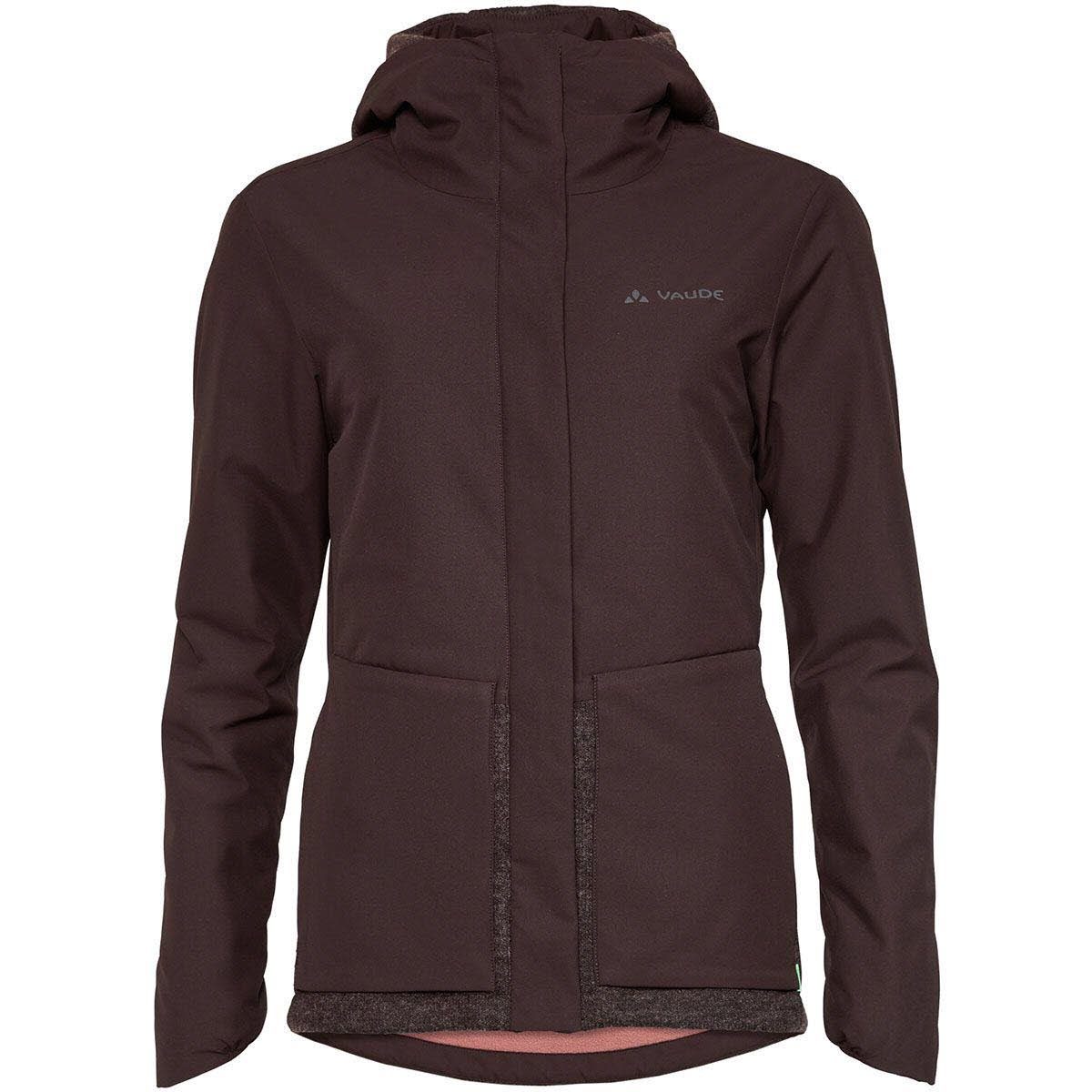 Lifestyle Geeignet für: Damen Konstruktion: Isolationsjacken PrimaLoft®, DWR Imprägnierung PrimaLoft® Black Eco Membran Typ: PU-Membran 2-Lagen Konstruktion Isolation aus Kunstfaser Füllmenge Einsatz: 60 g/m² Eigenschaften: schnell trocknend, schneller Feuchtigkeitstransport, atmungsaktiv, wasserabweisend, isolierend, elastisch, strapazierfähig Ausstattung: Reißverschluss: mit Kinnschutz, mit Windflap seitliche Eingrifftaschen mit Reißverschluss Reflektoren, Kapuze, verlängerter Rücken, Weitenregulierung Saum, vorgeformte Ärmel Passform: zur Größentabelle zum Größenberater Herstellung: Fair Wear Foundation (FWF), Grüner Knopf, enthält recycelte Materialien, PFC-freie Imprägnierung Material: Außenmaterial: 100% Polyester Innenmaterial: 100% Polyamid Füllung: 100% Polyester Einsatz: 56% Polyester, 31% Wolle, 13% Polyamid Vaude Damen Cyclist Padded IV Jacke pecan brown EU 38 Die Vaude Cyclist Padded IV Jacke ist eine wasserabweisende Bikejacke mit PrimaLoft® Black Eco Wattierung und trendiger Optik für Damen. Sie schützt zwar zuverlässig vor Regen und kühlem Wind, sieht aber aus wie eine schicke Alltagsjacke. Ideal für Citybikerinnen und für den Weg zu Fuß in die Arbeit. Die Kapuze lässt sich in der Weite verstellen, falls der Wind zu stark ist. Auch der Saum ist in der Weite regulierbar, ansonsten hat Vaude auf den femininen Schnitt geachtet, der diese wasserdichte Jacke so flexibel macht.