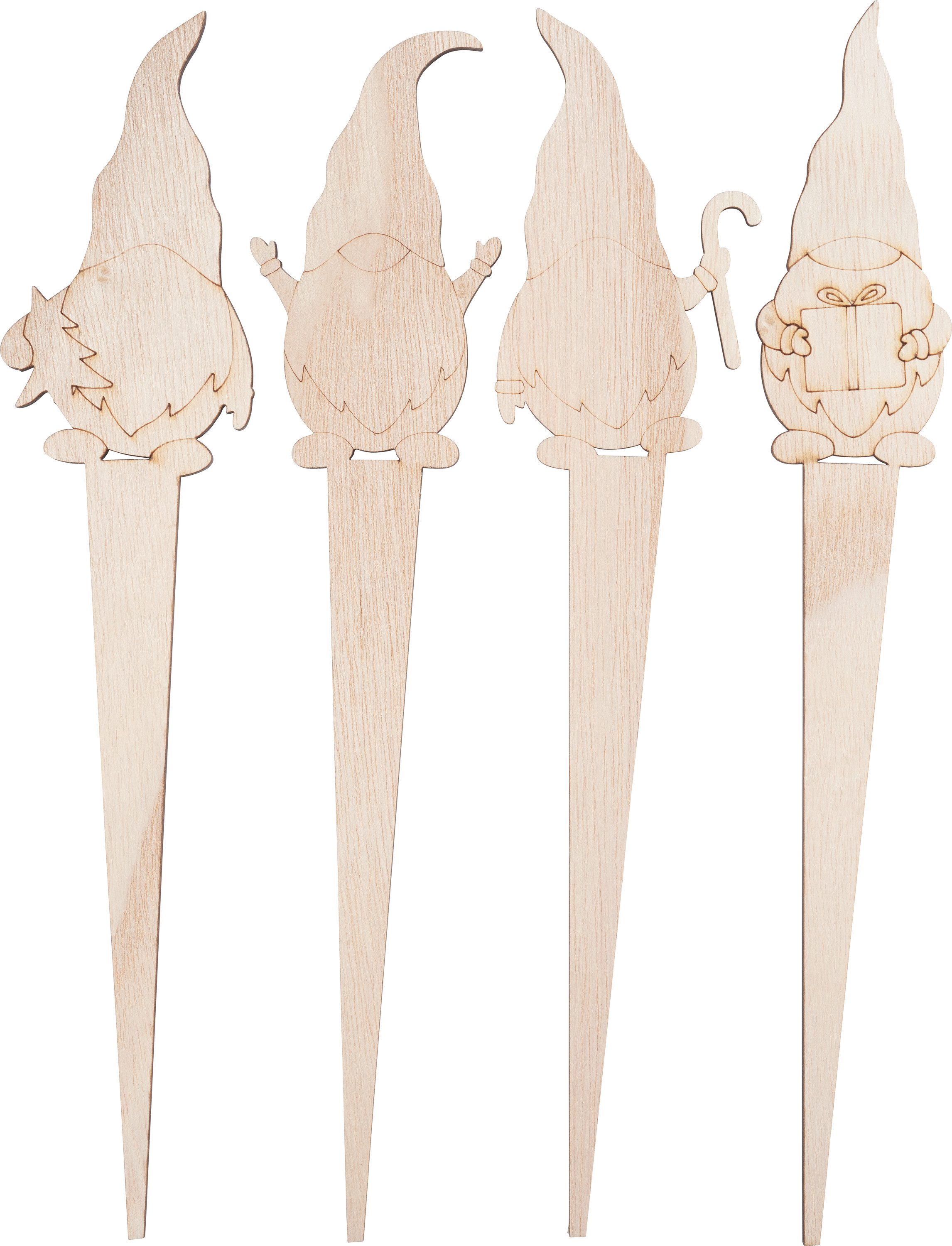 VBS Stecker 'Wichtel' als Set mit 4 verschiedenen Wichtel-Steckern, Höhe ca. 29 cm mit einer Breite von ca. 6 cm und einer Stärke von ca. 4,5 mm. Das Material ist furniertes Sperrholz. Die Wichtel sind unterschiedlich einseitig dekoriert mit vorgezeichneten Linien, als Erleichterung für das Bemalen der kleinen Wichtel. Mit Acryl-Linern oder Bastelfarben werden die Wichtel zu zauberhaften Unikaten.