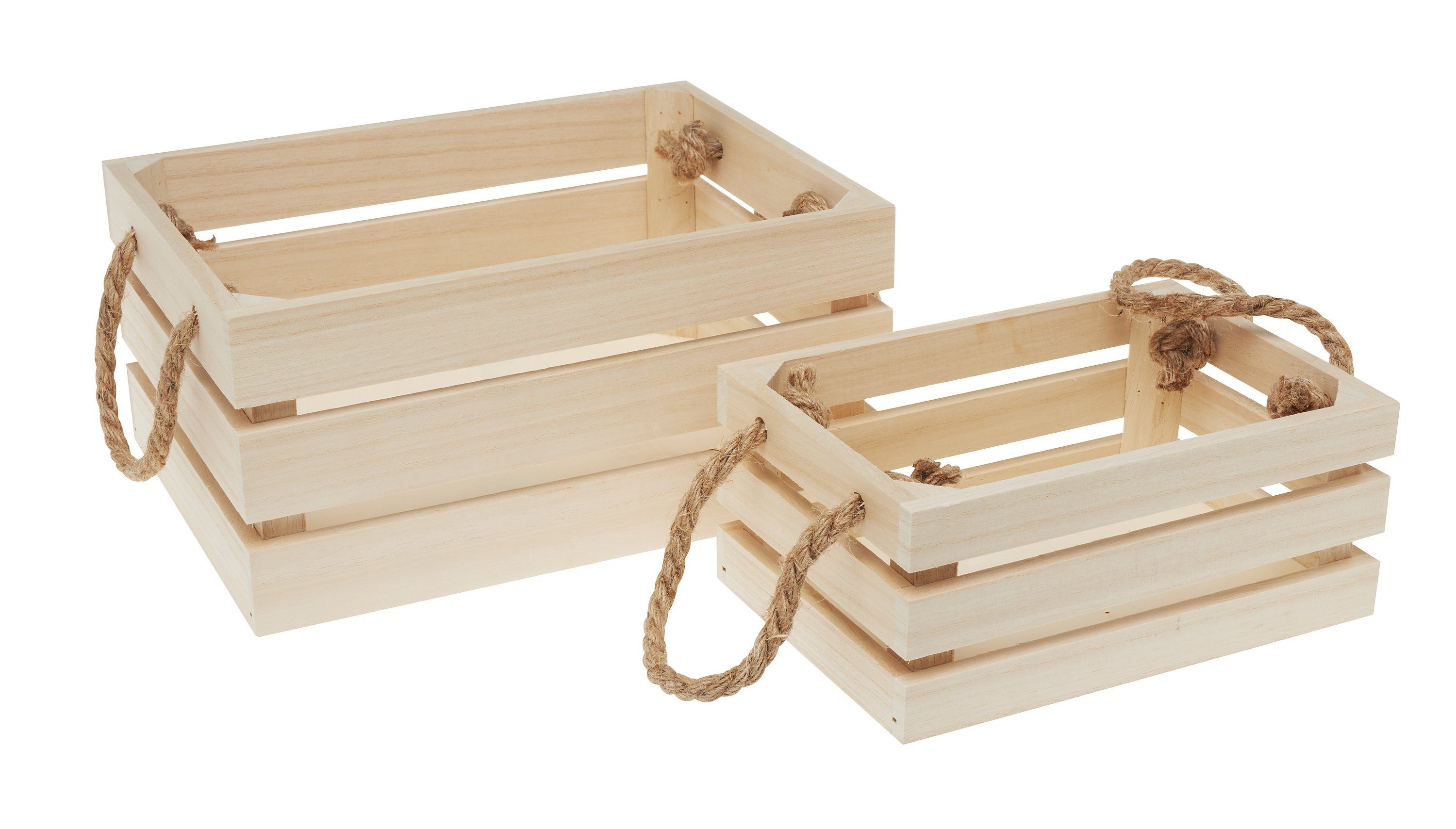 Setinhalt:2 Holzkisten mit Griffen aus Jutekordel in den Maßen