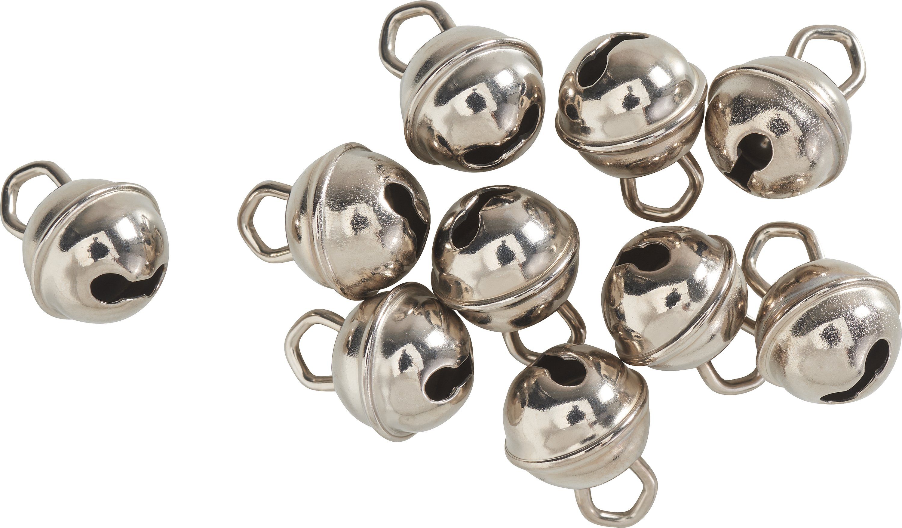 Schellen, 9 mm mit einem Inhalt von 10 Stück. Sie sind aus Metall hergestellt, vermessingt und nickelhaltig. Kreative Gestaltungen für Grußkarten, Geschenkanhänger, Scrapbook-Alben und auch im Floristikbereich für Gestecke und Kränze lassen sich mit den glänzenden Schellen hervorragend basteln. Ebenso für Puppen und Clowns geeignet.