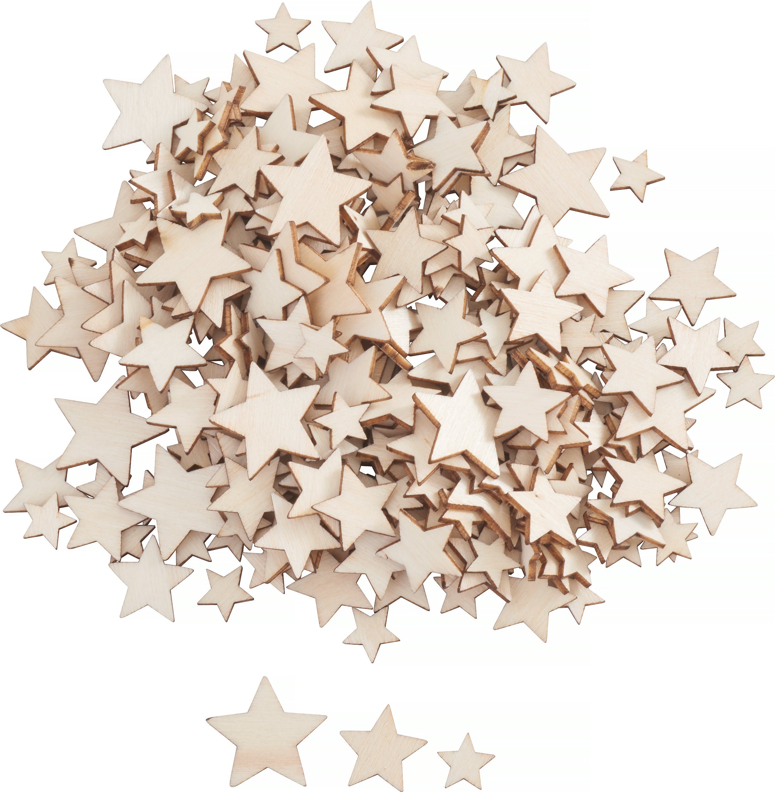 Streuteile Sterne 'Witney', XXL Packung, 272 Stück in den Größen Ø ca. 1,0 cm, 1,5 cm und 2,0 cm. Die Stärke liegt bei ca. 1,5 mm. Die Sterne aus Sperrholz sind ein toller Basic-Bastelartikel für weihnachtliche Gestaltungen im Floristikbereich, zum Verpacken von Geschenken oder auch für Weihnachtsgrußkarten. Mit Glitter, Bastelfarben und Brandmalerei lassen sich die unbehandelten und unbemalten Sterne individuell verzieren und sorgen somit für Hingucker. Auch naturbelassen als Streudeko für den gedeckten Tisch super.