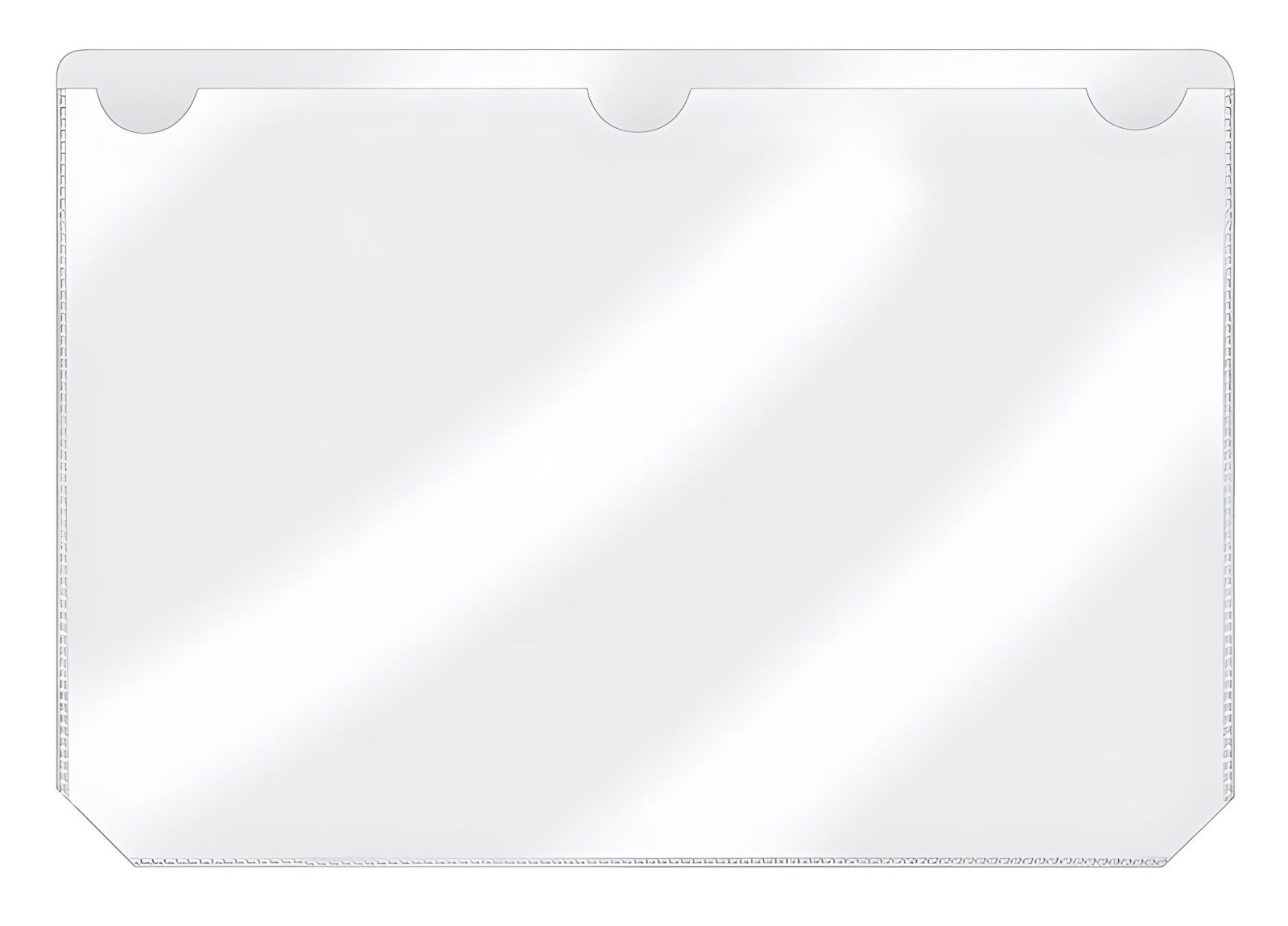 Selbstklebende Kennzeichnungstasche. Anordnung der Öffnung: oben offen - breite Seite offen. Stark klebende Rückseite. Mit drei Daumenausstanzungen zur leichten Befüllung. Rückseite vollflächig klebend. Inhalt sofort erkennbar. Werkstoff: PVC. Oberfläche: glänzend. Verwendung für Papierformate: Innenmaß: 220 x 145 mm. Farbe: transparent. Geeignet zur Anbringung in Bereichen, die extremen Temperaturschwankungen ausgesetzt sind. Temperaturbeständigkeit: - 30 Grad bis + 90 Grad.