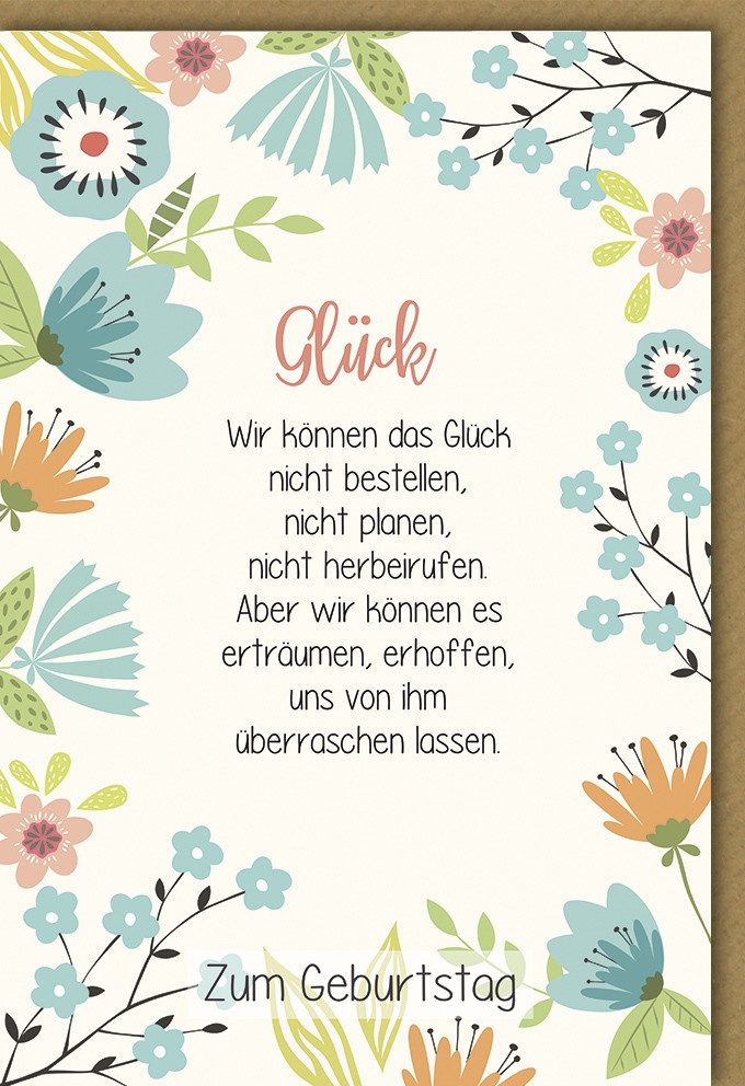 "Glück Wir können das Glück nicht bestellen, nicht planen, nicht herbeirufen. Aber wir können es erträumen, erhoffen, uns von ihm überraschen lassen. / Zum Geburtstag"