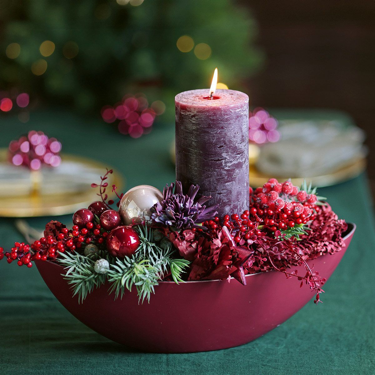 Machen Sie die Schale zum Mittelpunkt Ihrer Dekoration! Ob im Wohnbereich oder bei besonderen Anlässen, diese Schale in Dunkelrot verleiht jedem Setting einen Hauch von Stil und Eleganz. Holen Sie sich jetzt das ideale Accessoire für Ihre kreative Raumgestaltung!