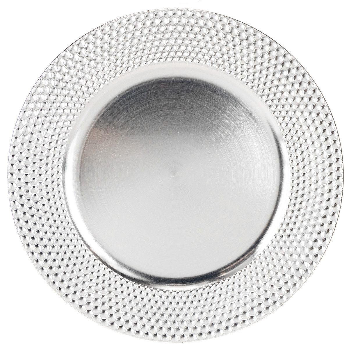 Dieser dekorative Teller aus hochwertigem Kunststoff strahlt durch sein edles, metallisches Design eine zeitlose Eleganz aus. Die runde Form des Tellers wirkt harmonisch und fügt sich nahtlos in jede Tischdekoration ein. Besonders eindrucksvoll ist der strukturierte Rand mit einem faszinierenden sechseckigen Muster, das dem Teller eine besonders ansprechende Optik verleiht und ihn zu einem Blickfang auf jeder Tafel macht.