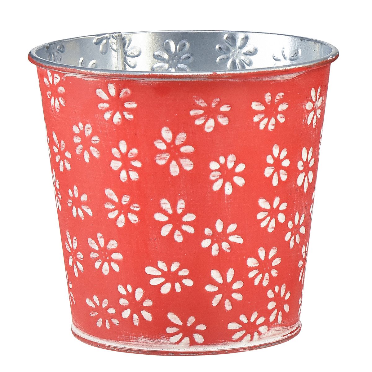 Dieser dekorative Metalltopf verbreitet mit seinem charmanten Blütenmuster eine unvergleichlich freundliche Atmosphäre in jedem Raum. Die liebevoll geprägten und bemalten Blümchen verleihen Ihrem Zuhause einen Hauch von Nostalgie. Die leicht verwaschene Optik des Designs sorgt für einen modernen Vintage-Look, der gleichzeitig verspielt und elegant wirkt. Die Außenseite besticht durch ihre markante Farbgebung, während die Innenseite mit ihrem silbrigen Glanz die kühle Schönheit des verzinkten Metalls unterstreicht.