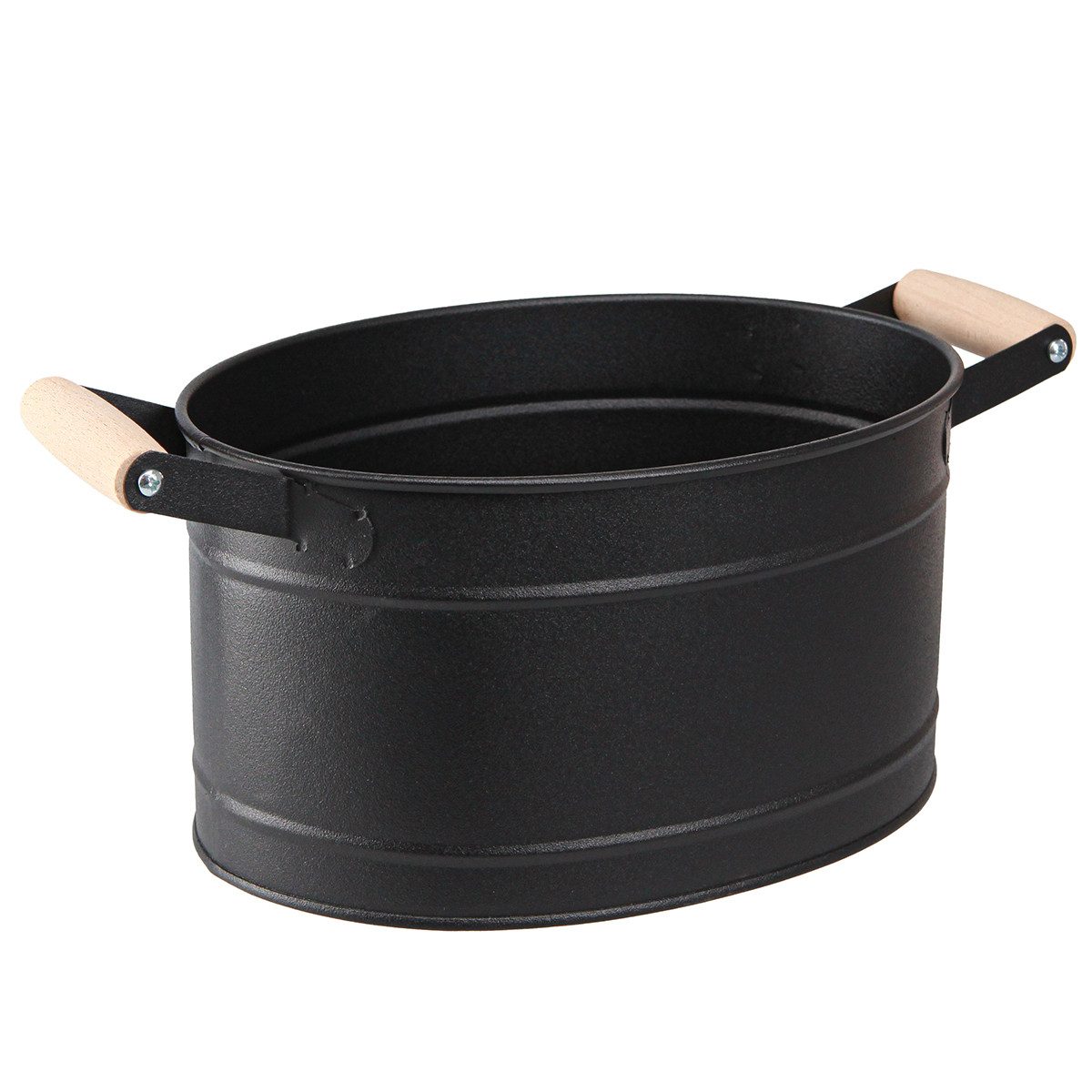 Unser ovaler Blumentopf aus robustem Metall ist ein Highlight in jedem Zuhause. Mit seinen naturfarbenen Holzgriffen und der modernen schwarzen Farbe passt er perfekt zu jeder Einrichtung.