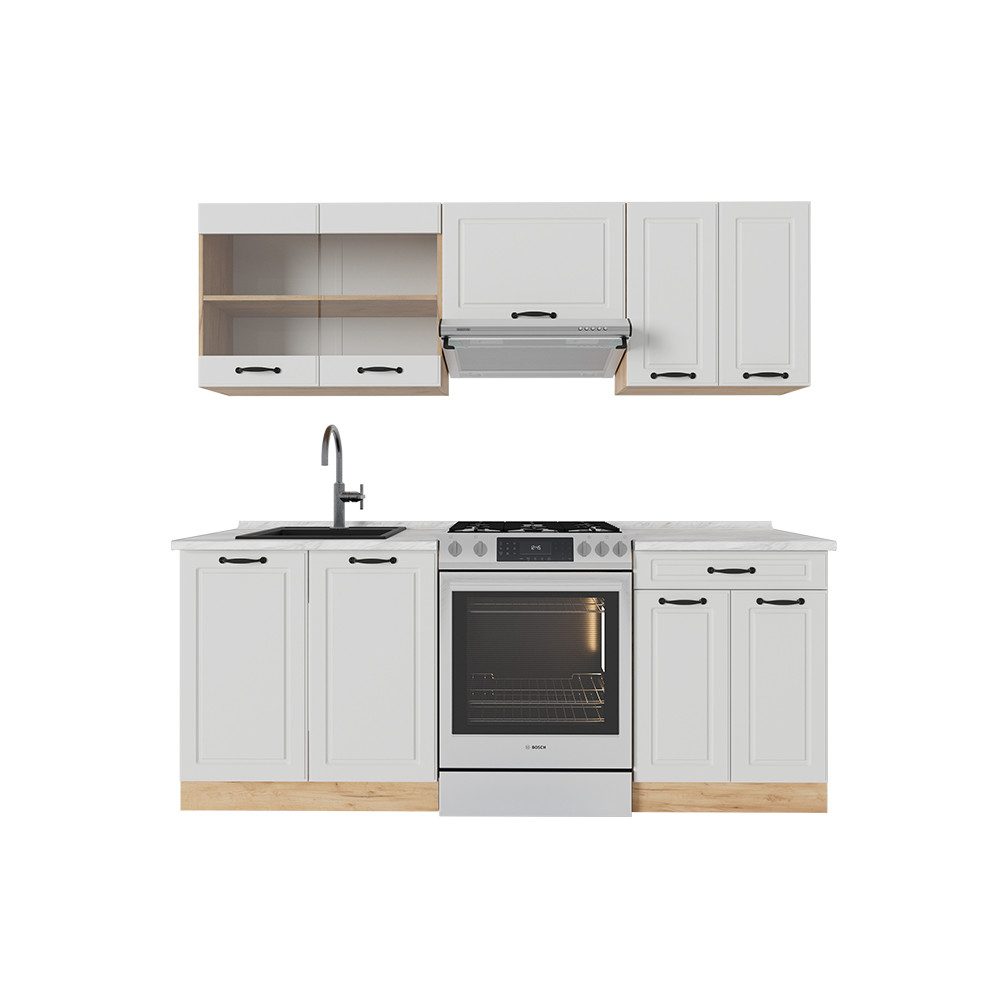 LIEFERUMFANG: Küchenblock ohne Arbeitsplatte, Montagematerial, Montageanleitung (Sofern nicht anders angegeben, gehören Elektrogeräte und Dekorationen nicht zum Lieferumfang)#26412