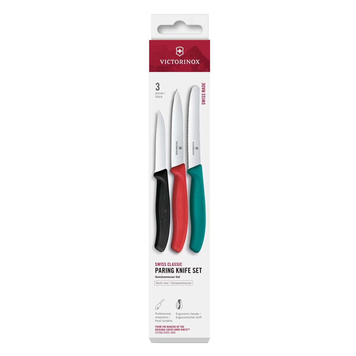 Dieses praktische Set umfasst Messer mit rostfreien Stahlklingen, die mit professioneller Schärfe überzeugen. Es beinhaltet sowohl Messer mit Wellenschliff als auch mit geradem Schliff. Der ergonomische Griff sorgt für eine leichte Handhabung, optimalen Komfort und präzise Kontrolle. Das spülmaschinenfeste Set wird in der Schweiz hergestellt und bietet eine einfache Pflege sowie hohe Präzision im täglichen Küchengebrauch.