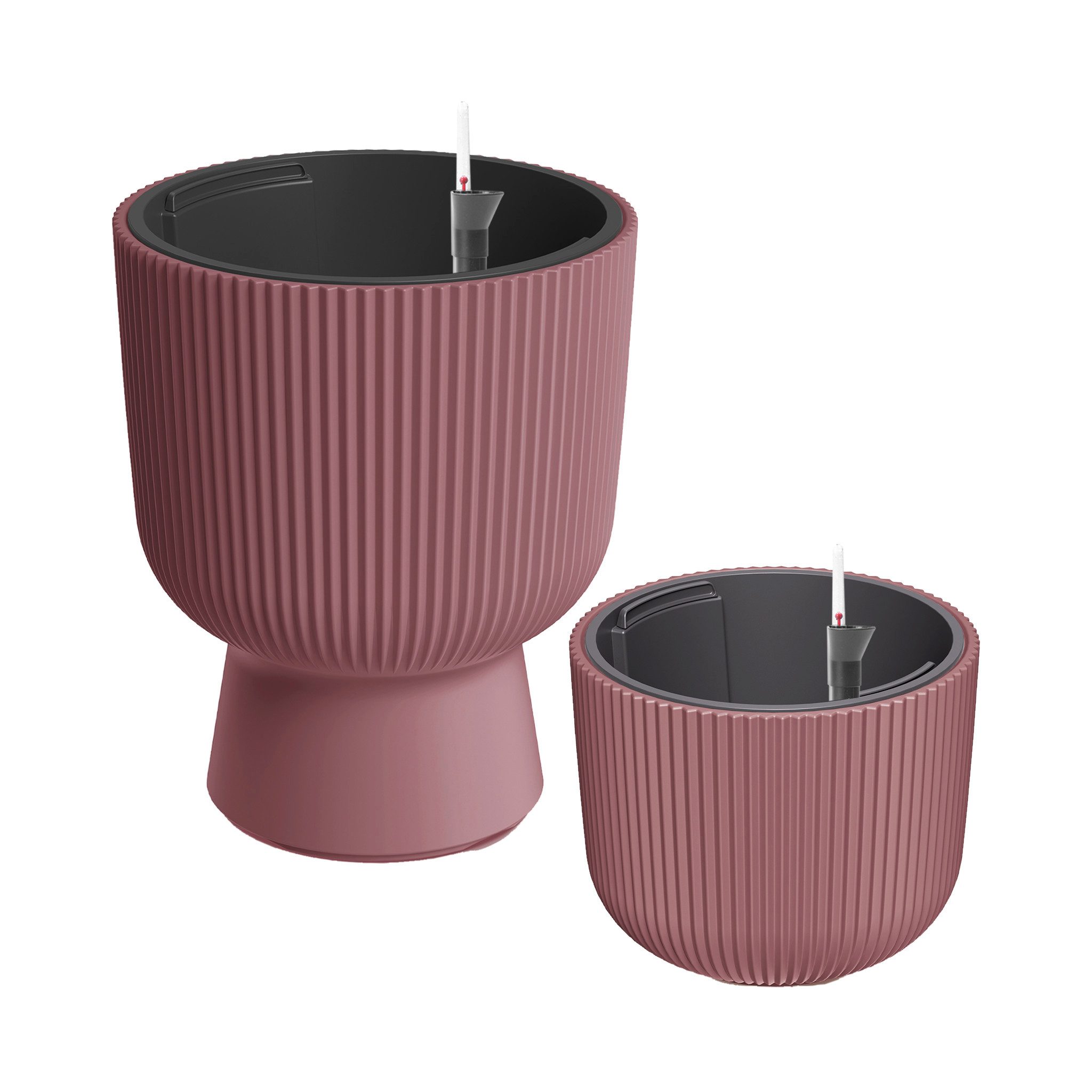 Hier findest Du ein dekoratives Set bestehend aus einem Design-Pflanzgefäß ALVY ø 30 und einem Design-Pflanztopf CYRA ø 24 in der gleichen Farbe, sowie zwei passenden Bewässerungseinsätzen.
