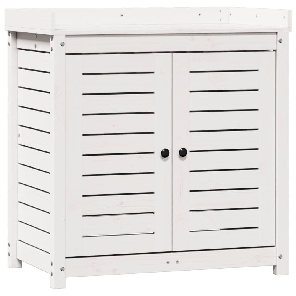 Mit Aufbewahrungsschrank versehen, bietet dieser Pflanztisch aus Holz reichlich Platz für verschiedene Sachen wie Gartengeräte, Erde, Düngemittel usw.