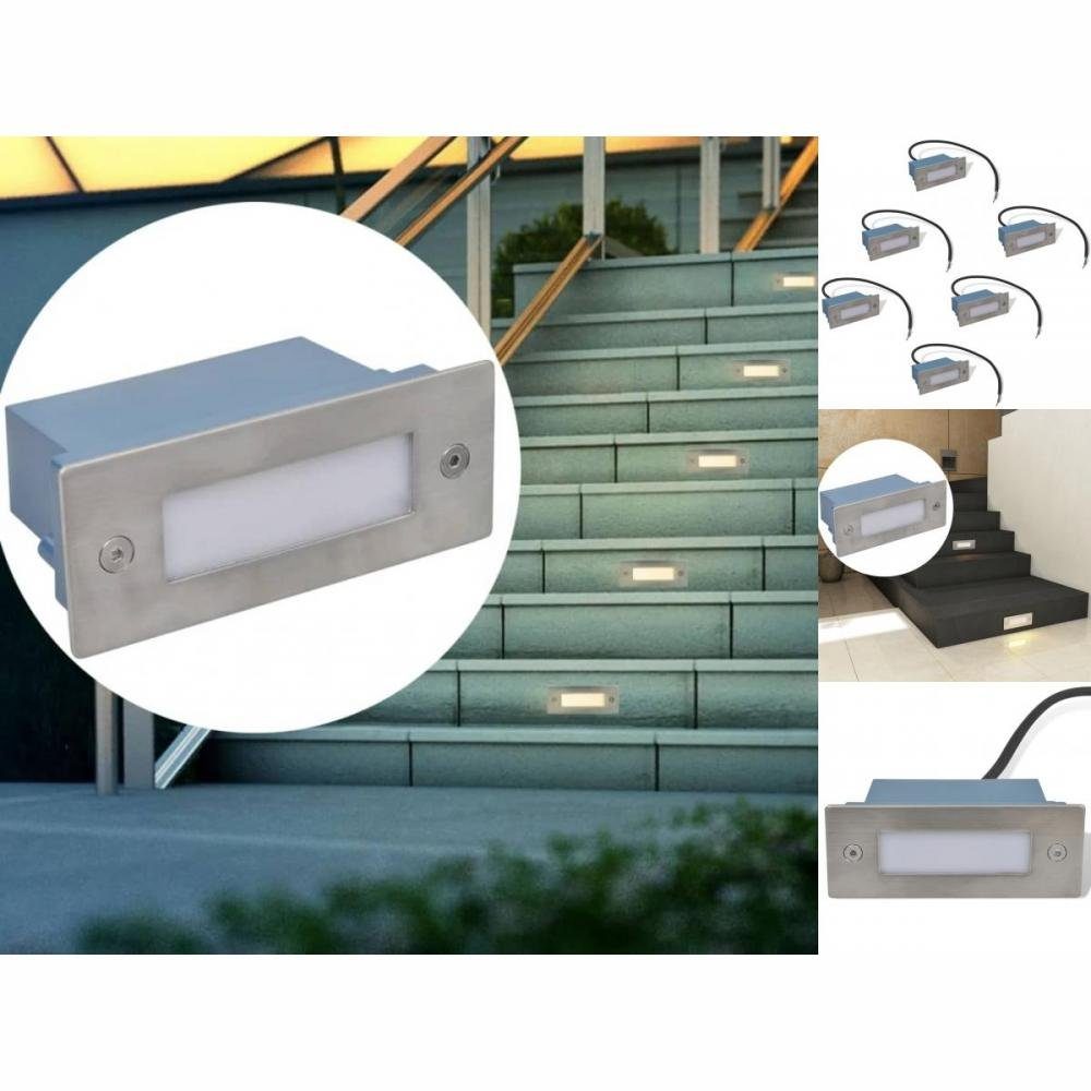 Dieses Set besteht aus 6 LED Treppen-Einbauleuchten mit 12 LED-Chips, die eine raffinierte Beleuchtungslösung für Ihr Treppenhaus sind.Diese Leuchten verwenden die SMD LED-Technologie und sind sehr einfach einzubauen. Sie können auch als dezente Wand- oder Deckenleuchten benutzt werden. Darüber hinaus sind sie energiesparend, da sie einen geringen Stromverbrauch haben, und haben eine lange Lebensdauer. Die LED-Gartenleuchten haben die Schutzart IP54, sodass sie für den Einsatz im Außenbereich geeignet sind. Im Lieferumfang sind 6 LED Treppen-Einbauleuchten enthalten.