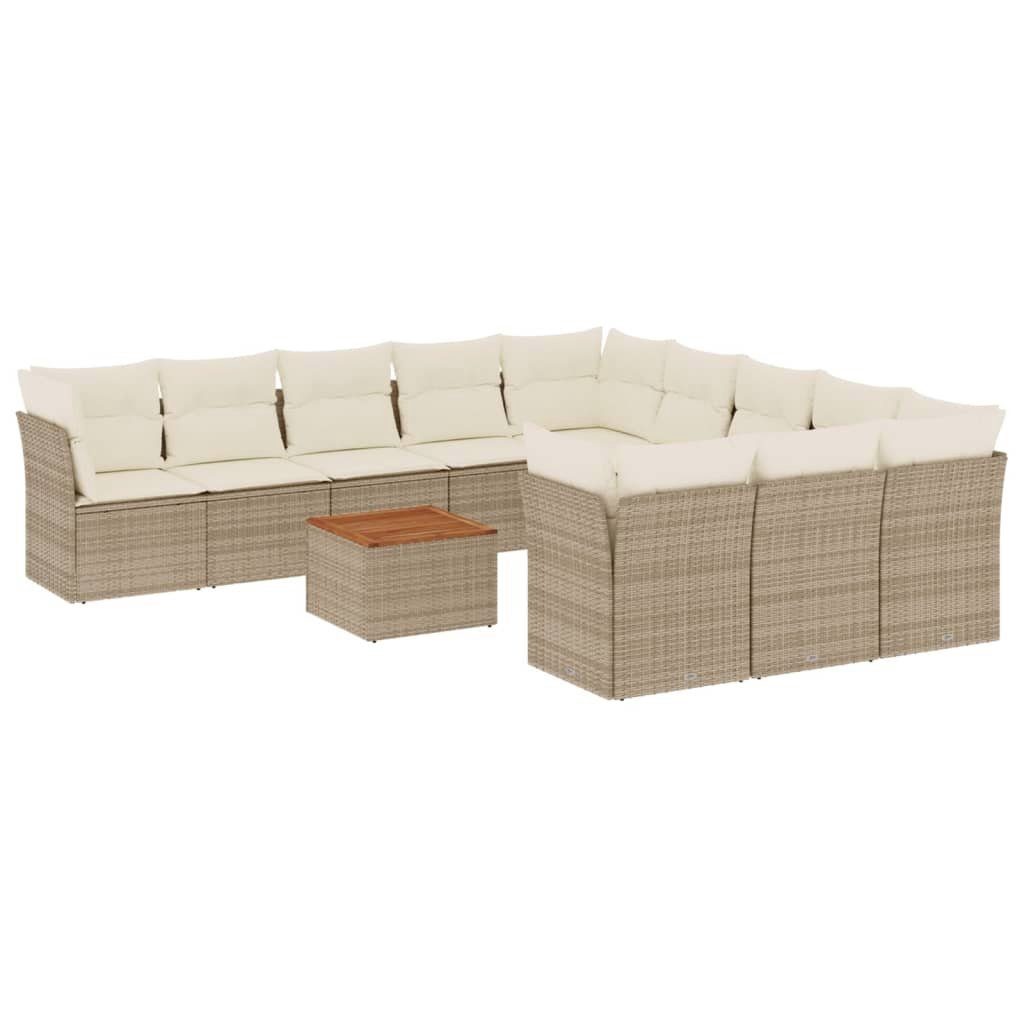 vidaXL Gartenlounge-Set 12-tlg. Garten-Sofagarnitur mit Kissen Schwarz Poly Rattan, (1-tlg)