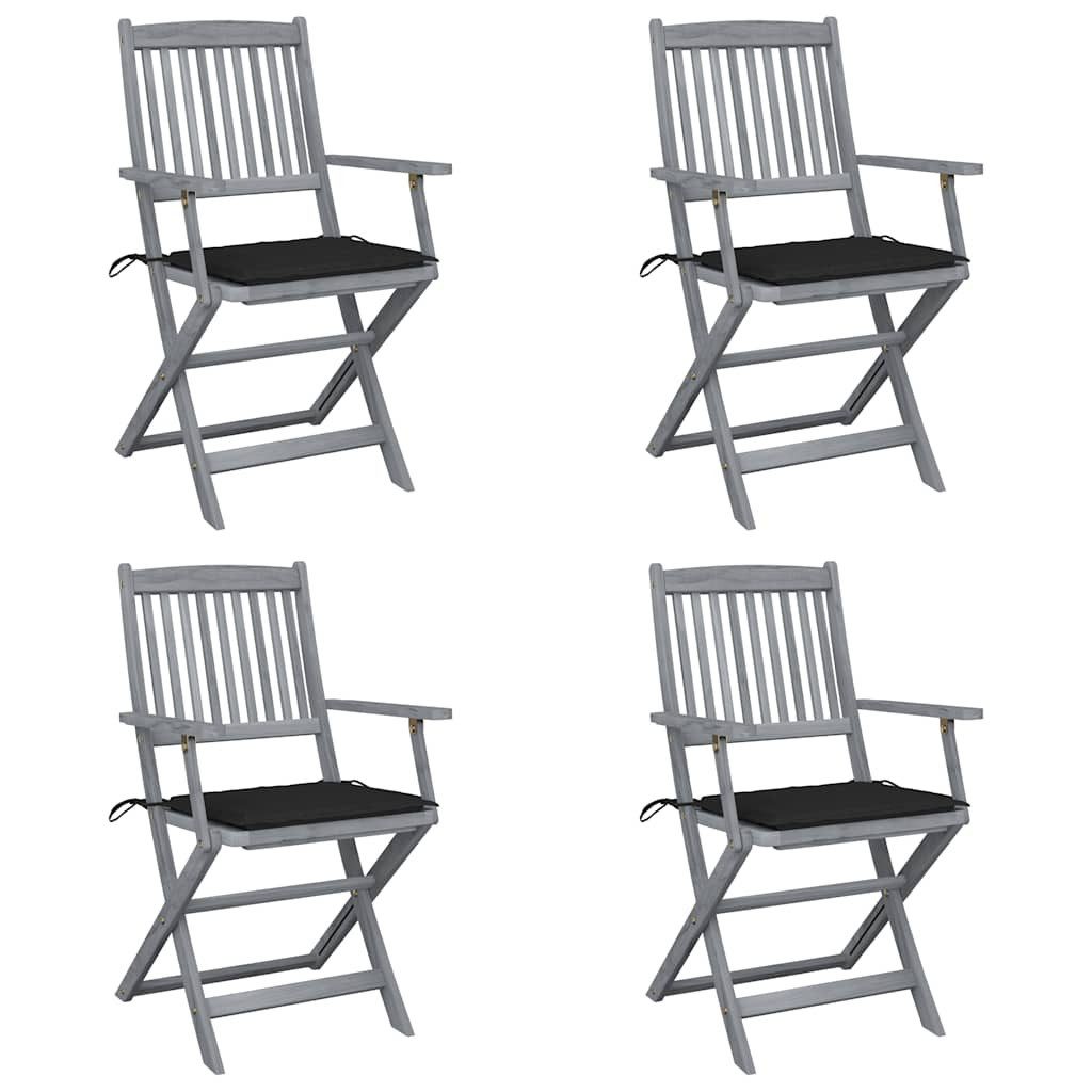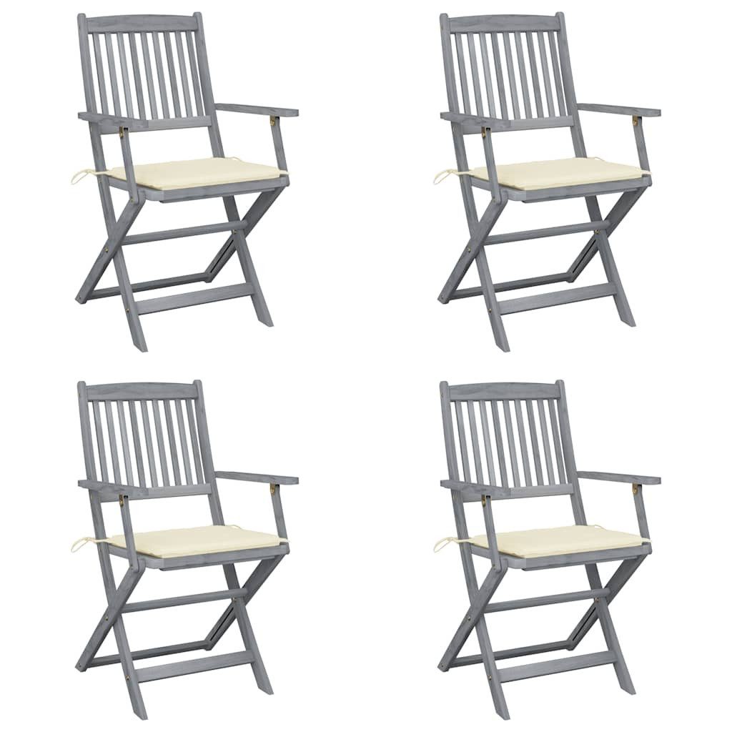 Diese Essstühle bestehen aus massivem nholz, einem tropischen Hartholz, was die Stühle witterungsbeständig macht und eine jahrelange Lebensdauer gewährleistet, da massives nholz sowohl belastbar als auch verschleißfest ist. Die grau lasierte Oberfläche ist ganz einfach mit einem feuchten Tuch zu reinigen. Bei Nichtgebrauch lassen sich die Stühle platzsparend zusammenklappen. Darüber hinaus bieten die mitgelieferten Sitzkissen zusätzlichen Komfort beim Entspannen oder Speisen. Zur sicheren Befestigung am Stuhl ist jedes Sitzpolster mit je zwei Bindebändern an zwei Ecken versehen.